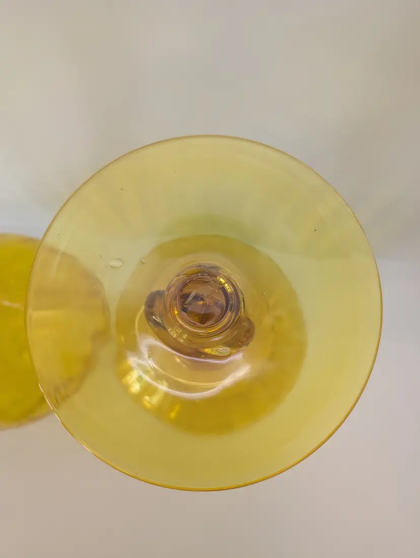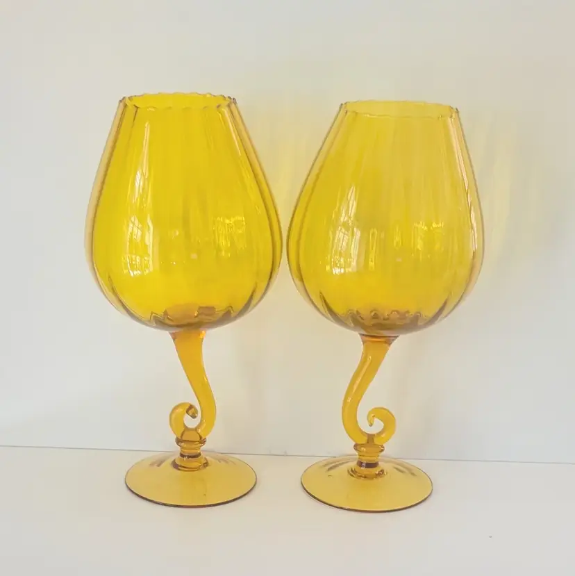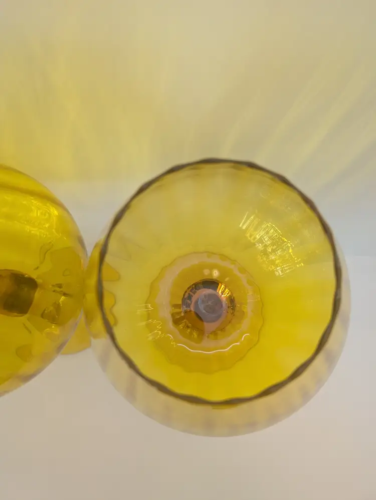 Some bubbles in glass but no chips or cracks. See photos. Height = 14.5 inches Diameter of bases = 5.5 inches