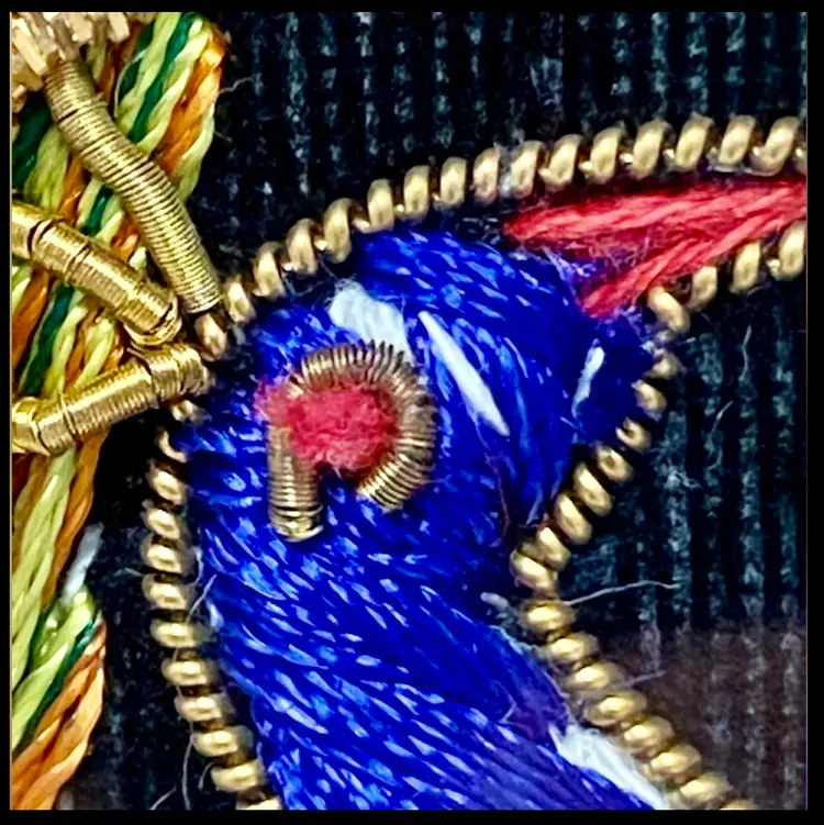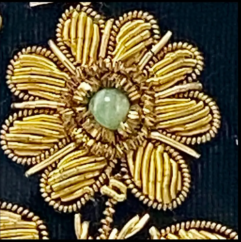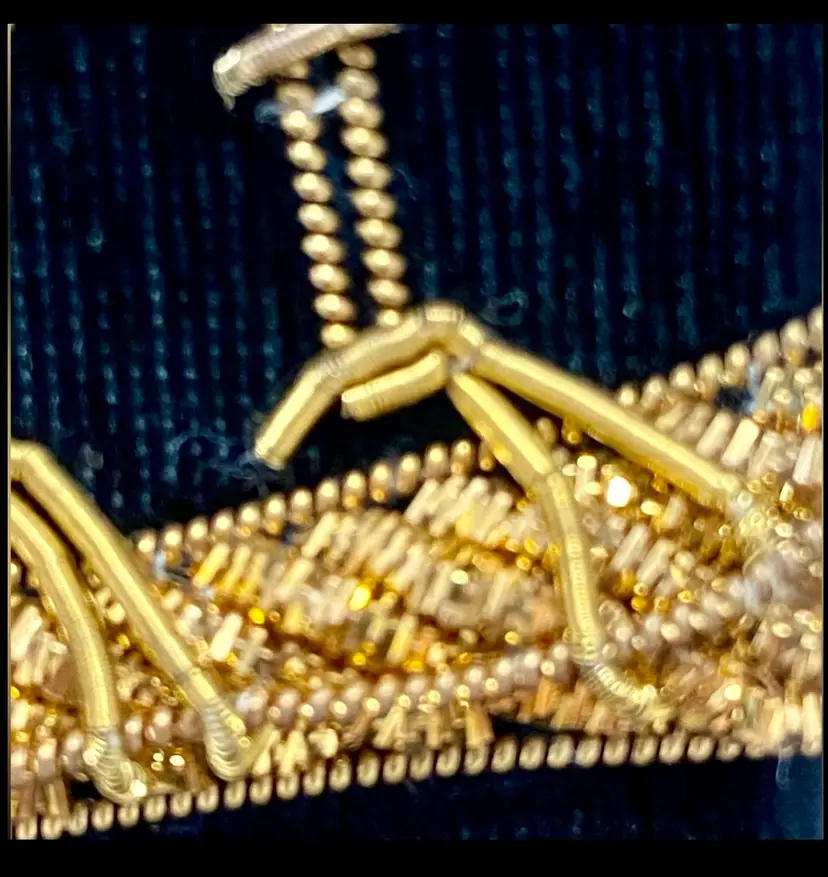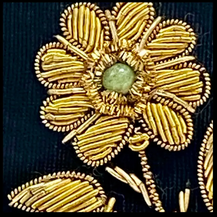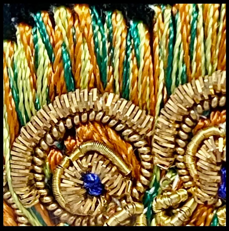 ✅ This Stunning Shimmering 100% Handcrafted Timeless Work of Ancient Art Known as Zardozi, Sarmadozi, Resham, Zari Work. Elegant Lightweight Framed Wall Hanging. Expertly Hand-Embroidered on Black Velvet by Highly Skilled Zardozi Artisans using Silk, Metallic Gold Threads called Zardozi, and Genuine Semi-Precious Stones. This Wall Art Hanging Design has a Beautiful Colorful Blue Peacock with Gold Floral. Truly a Work of Art!… This Unique 3D Luxury Effect Measures Framed 14 1/2” Wide and 11 3/4” High and is in Excellent Mint Condition!… It is a Great Piece of Work for Giving Any Home a Royal Look!... Makes an Extraordinary Gift for Anyone who Loves Peacocks, Birds or Embroidery!… It is Most Certain to Become a Modern Heirloom!…