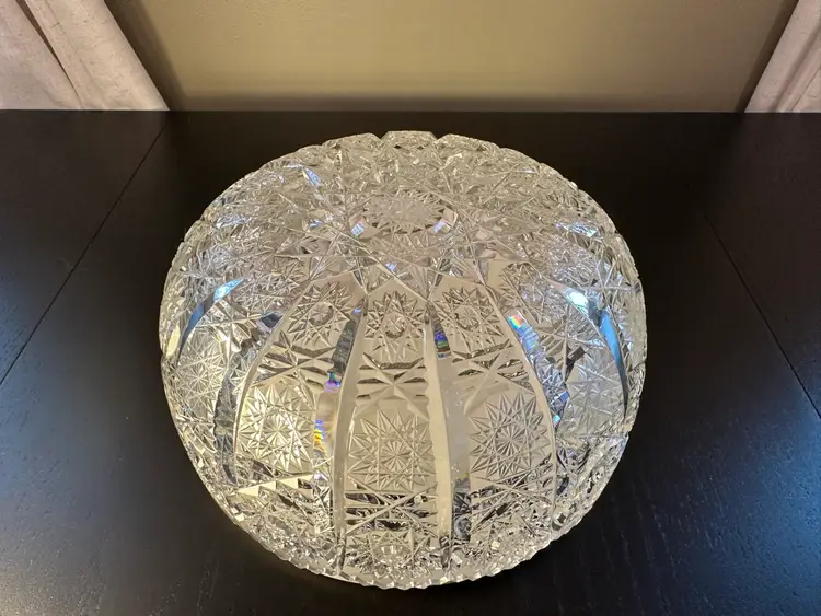 Add a touch of vintage sparkle to your home with this gorgeous Bohemian hand-cut crystal bowl. Featuring the classic "Queen’s Lace" (or Pinwheel) pattern, this piece is a total light-catcher—perfect for sitting on a sunlit table or acting as a stunning centerpiece for your next dinner party. It’s made of heavy lead crystal, so it has that satisfying weight and a beautiful, clear ring when tapped.