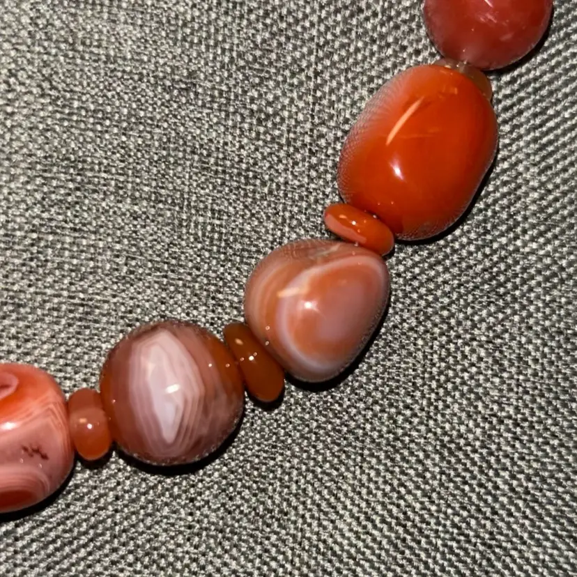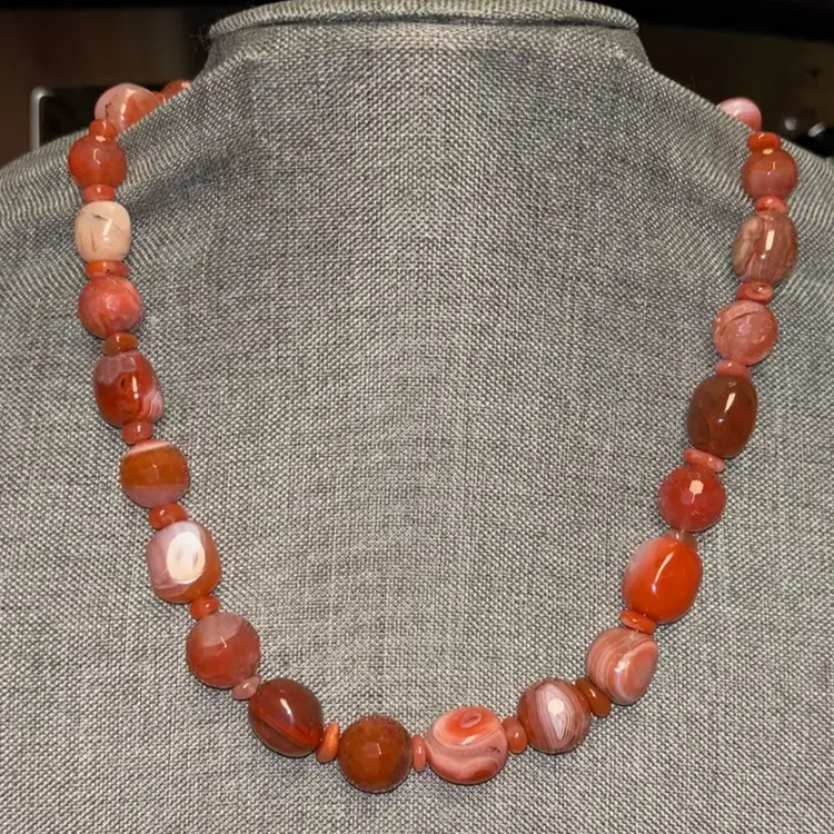 Stunning Vintage Carnelian Stone Necklace Orange And Pink Tones