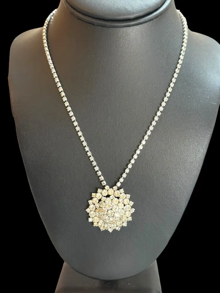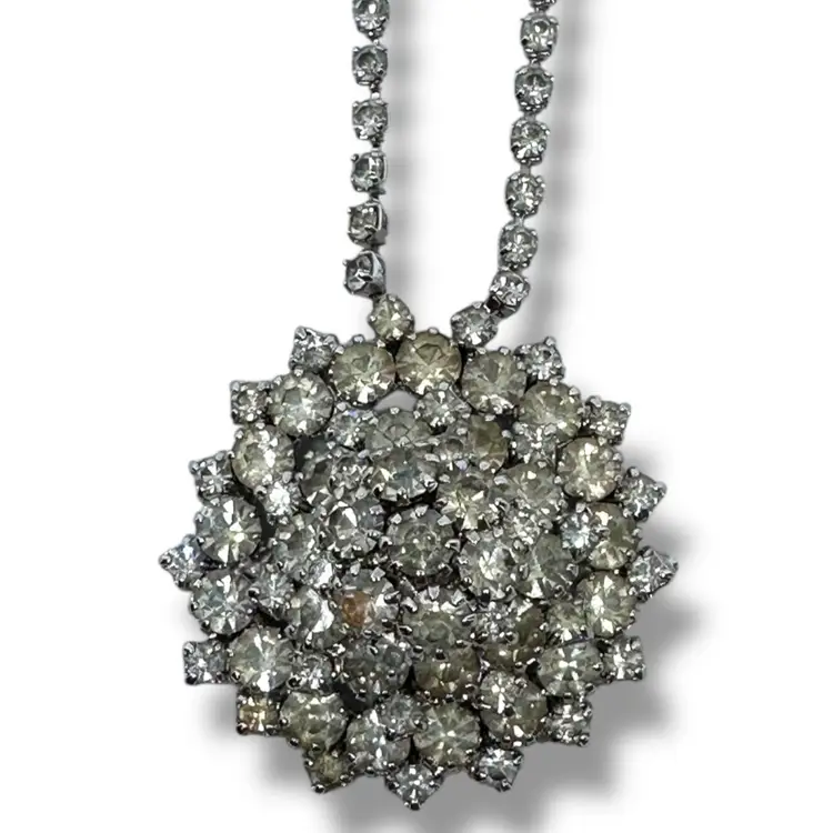 Stunning Vintage Domed Crystal Rhinestone Pendant Necklace