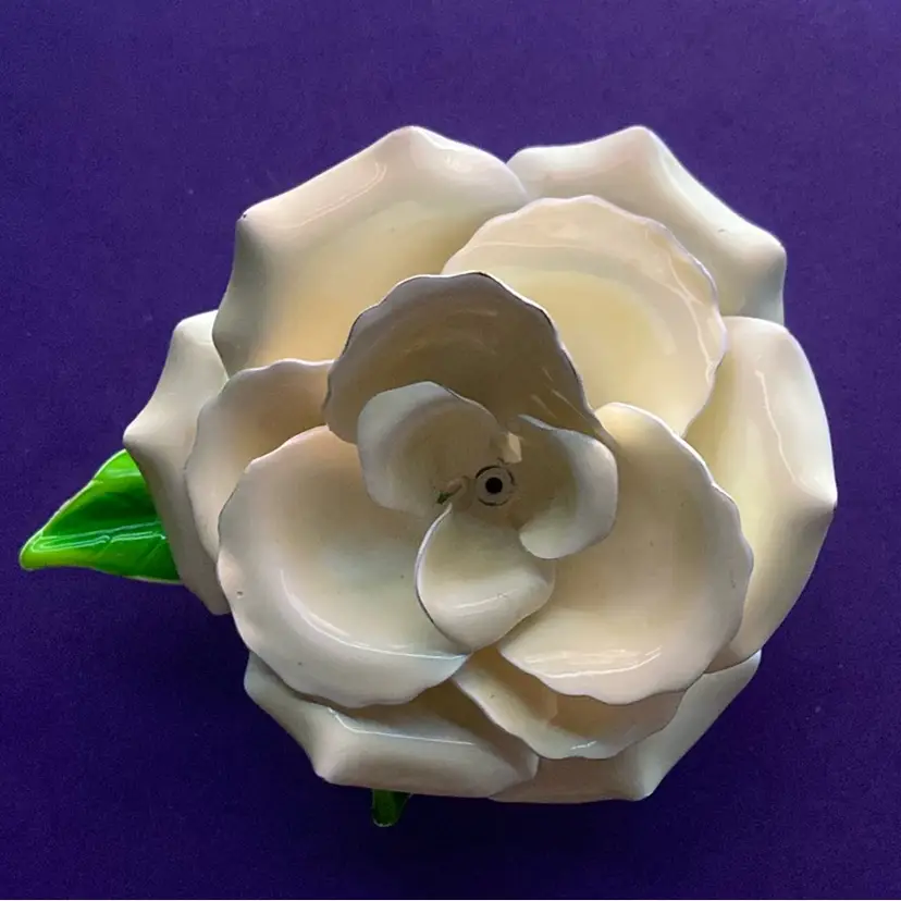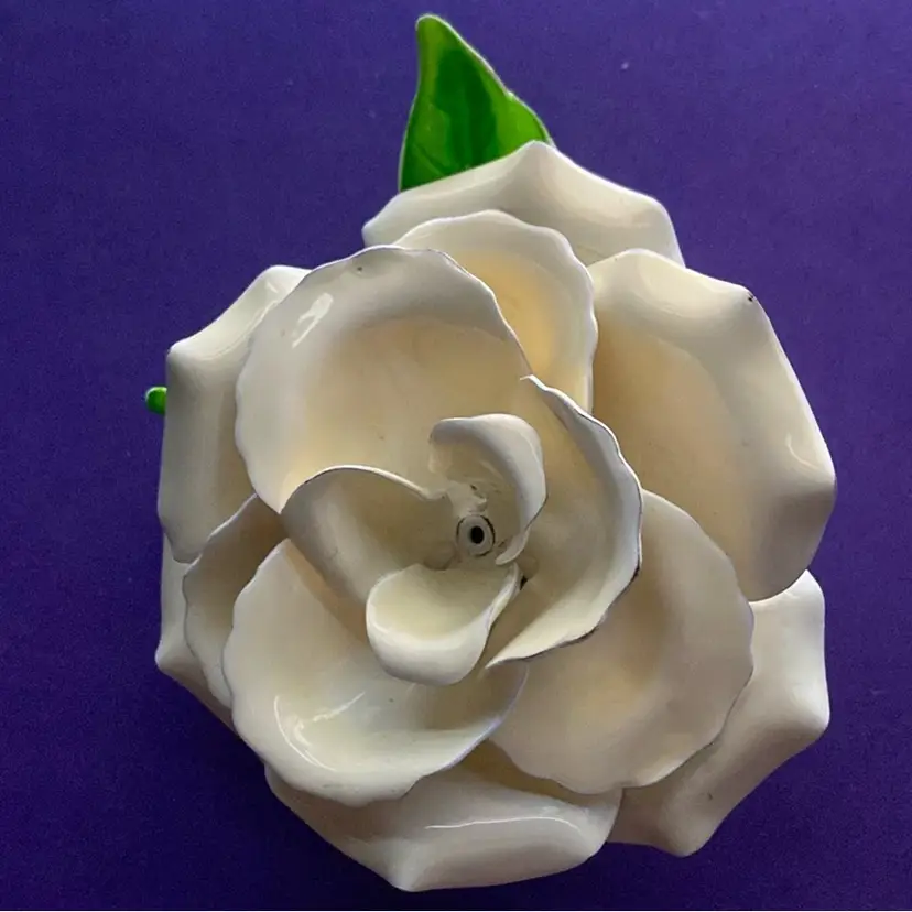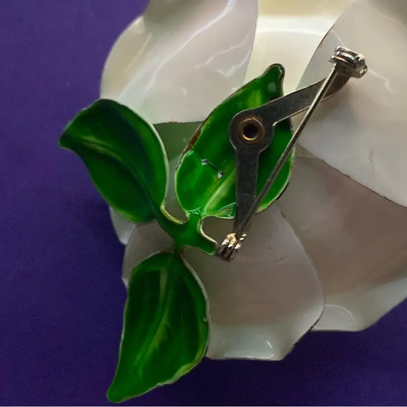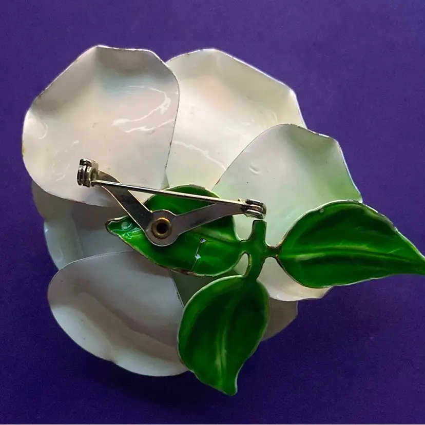 Condition: Very dimensional and large rose brooch and is in excellent vintage condition. I don’t see any enamel wear. Not sure it has ever been worn.