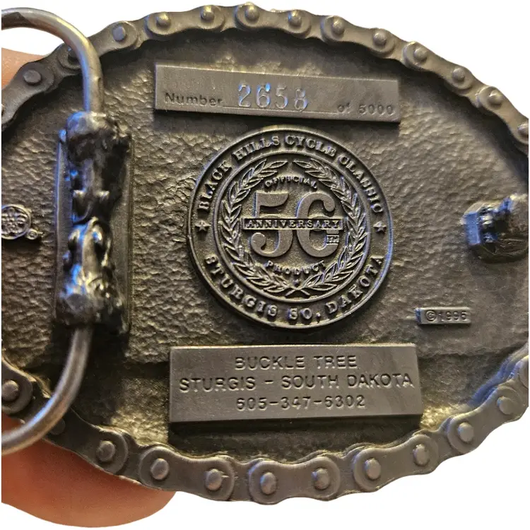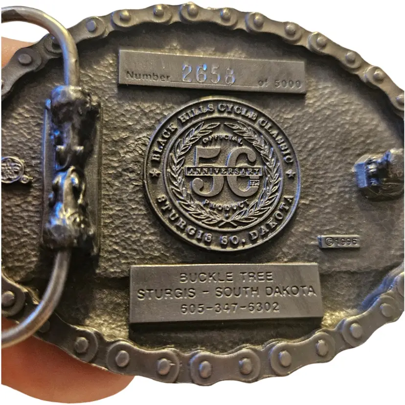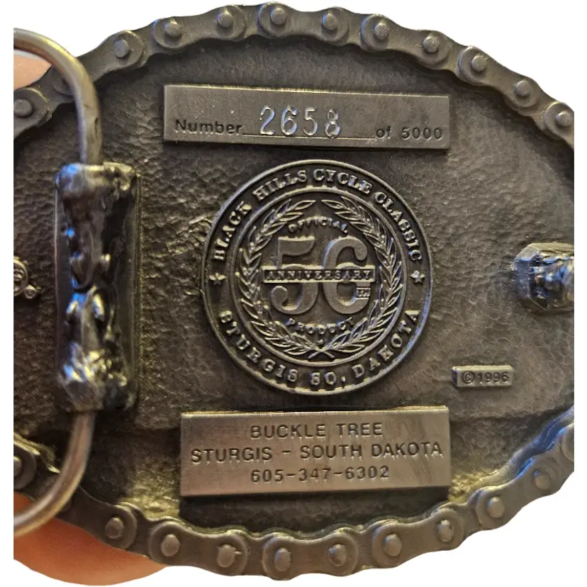 vintage belt buckle celebrating the 56th annual Sturgis SD cycle classic aka black hills cycle classic