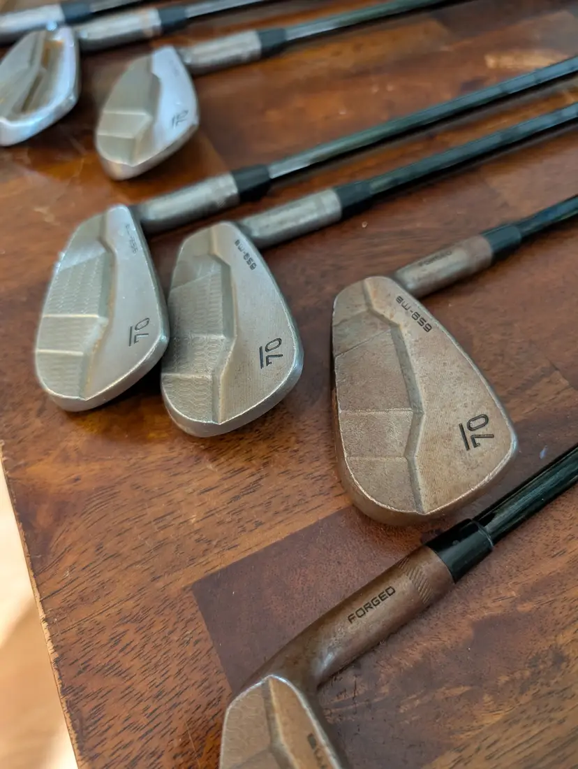 This is a combo set with the 4&5 irons 659 CB for more forgiveness, and the rest are 659 MB. Shafts are KBS Tour 130 X. These are big boy irons, meant for fast club head speeds. My game is not where it should be to play them, but they are an excellent set of irons for low to mid handicappers.