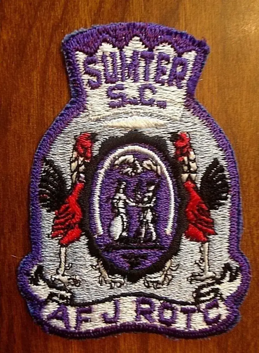 Sumter High School AFJROTC Patch, Sumter, SC "Gamecocks". Patch measures approx. 4.0 inches by 3.0 inches and is mint condition. Please see photos for additional details.