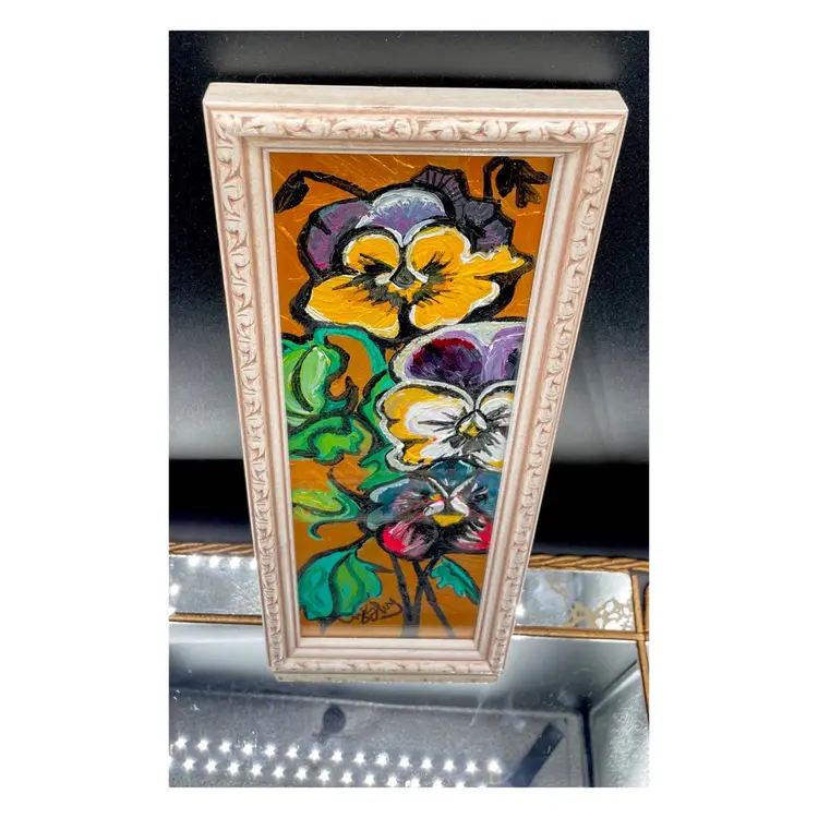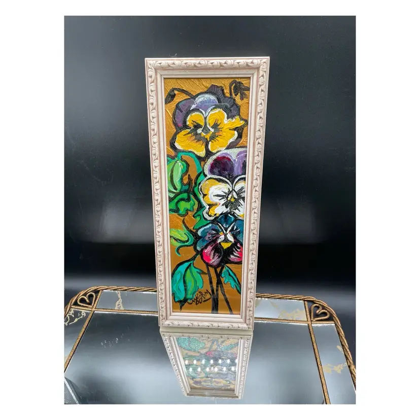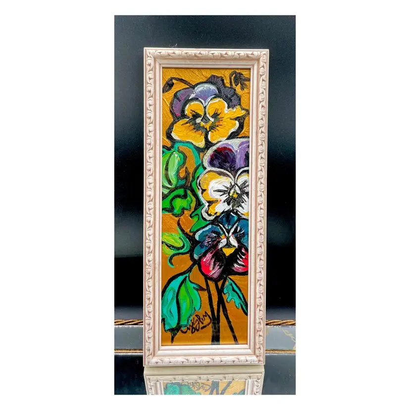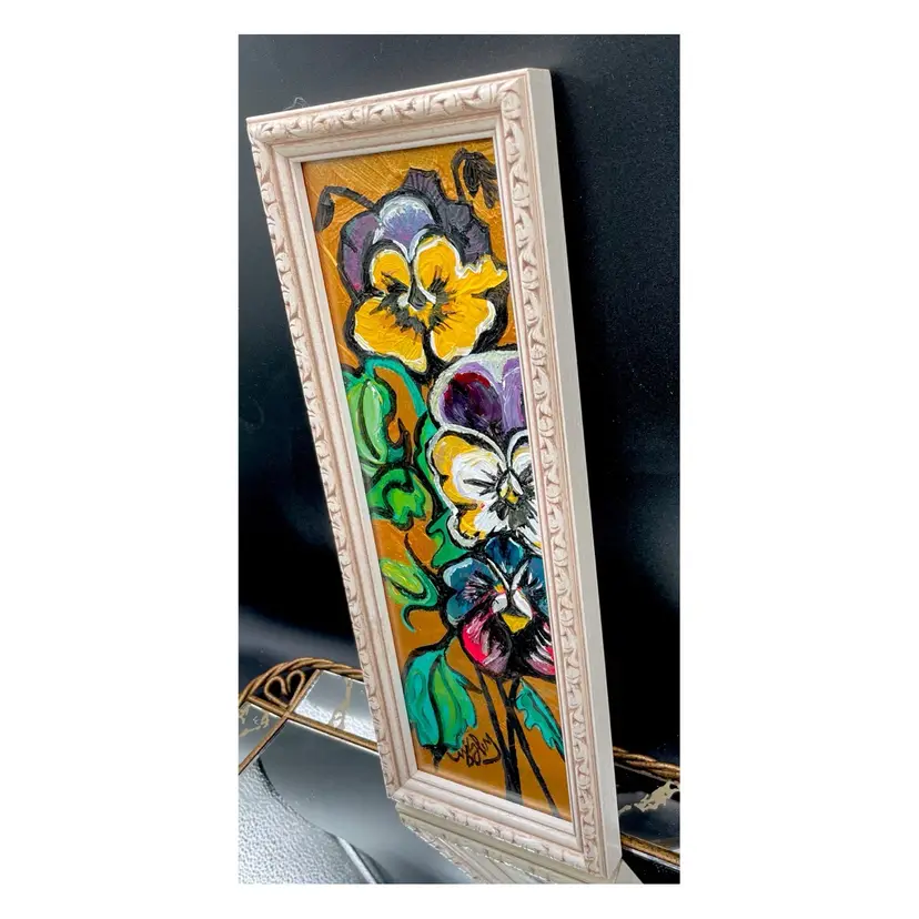 New original pansy painting On 4”x12” watercolor paper In 5”x13” preloved frame With glass Good condition #1173