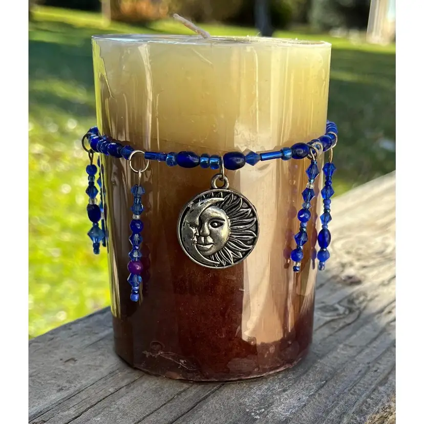This artisan created Sun & Moon Blue Glass Candle Decoration is perfect to accent your candle any time of the year. Candle is Not included.