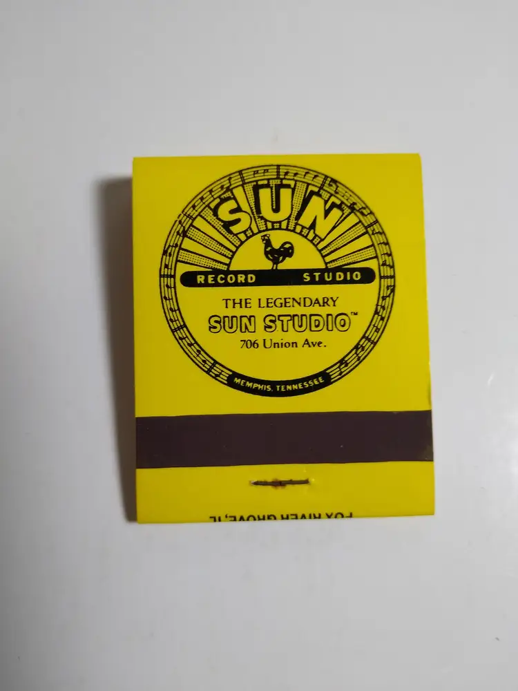 Vintage UNUSED full pack of matches from Sun Recording Studio in Memphis, Tennessee. New old stock with light age wear and light rusting to staples. Parcel Post mail only to lower 48 states as it is flammable.