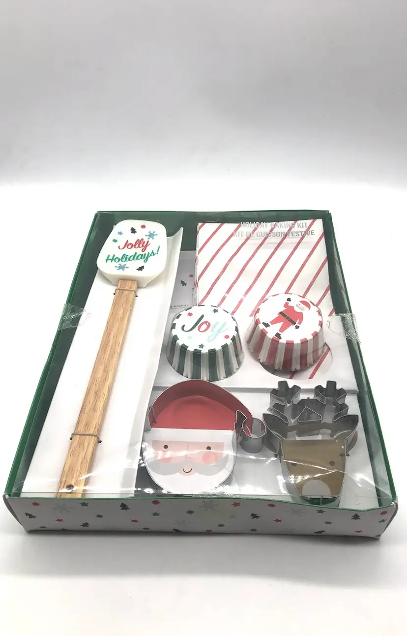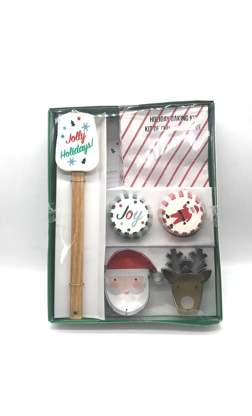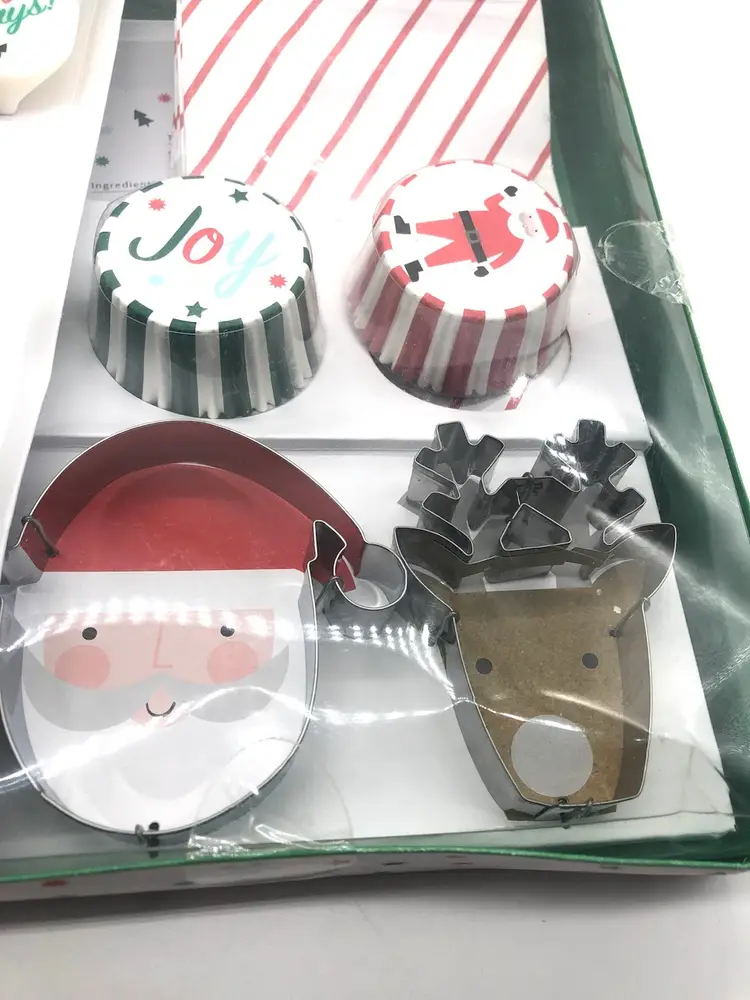 2 festive cookie cutters A beautifully decorated spatula 48 adorable cupcake liners 8 charming treat bags 6 inspiring recipe cards 16 dazzling foil stickers