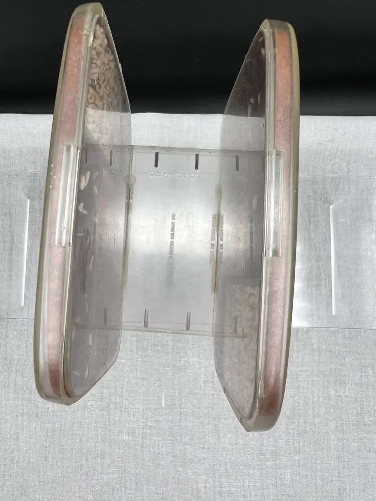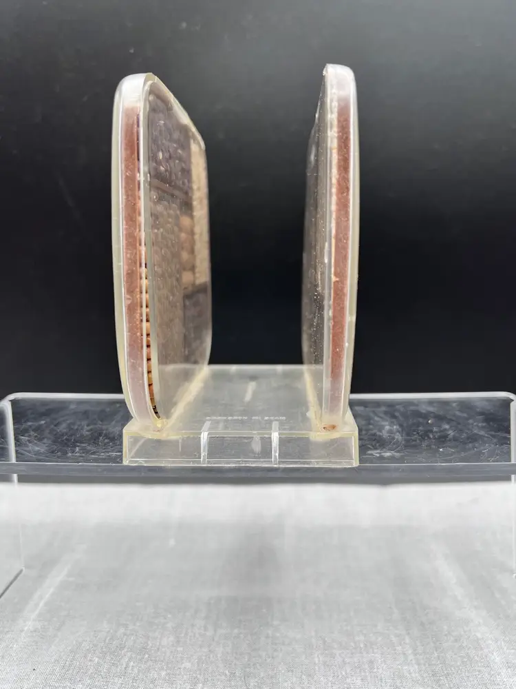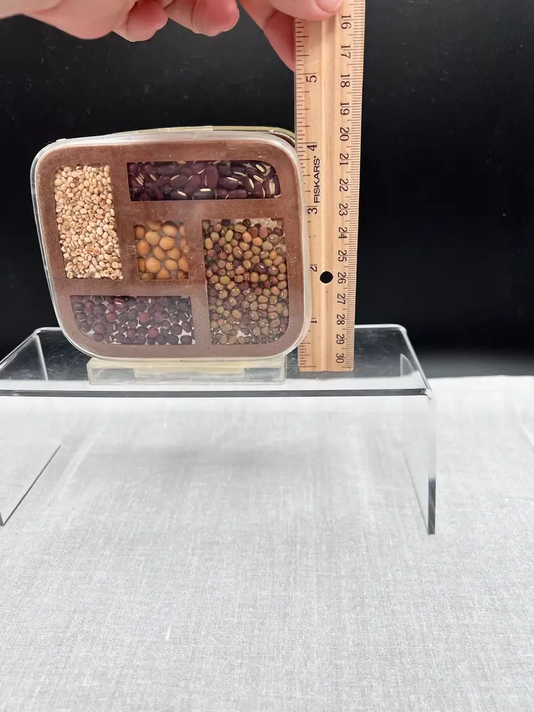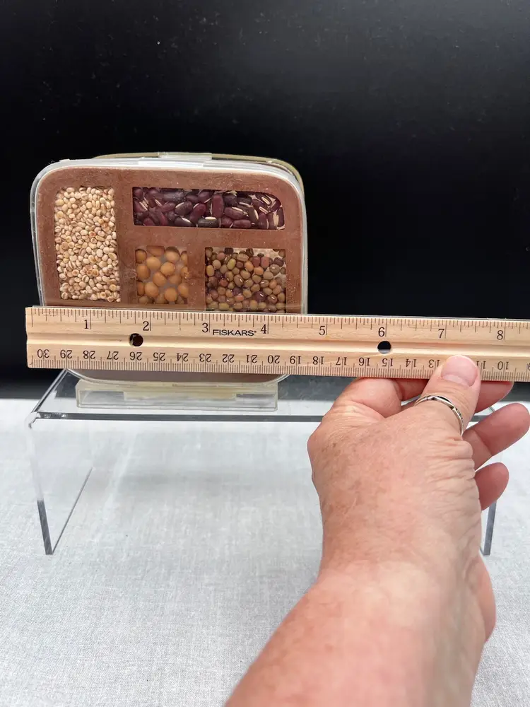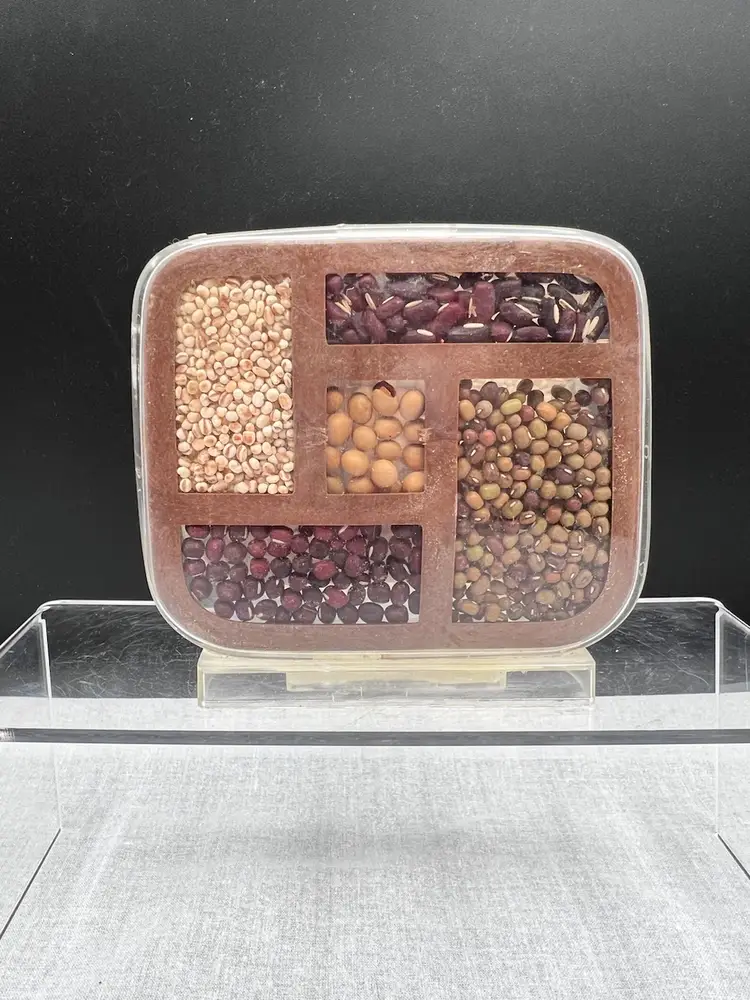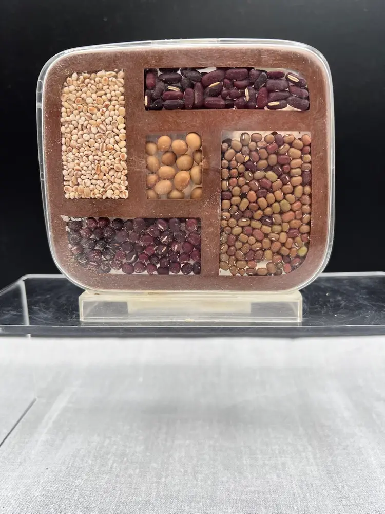 Super retro vintage plastic napkin holder with seeds and beans imbedded in the piece.