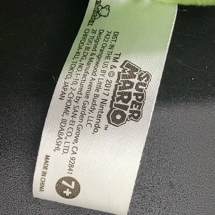 2017 Super Mario Brothers Yoshi Plush Height 10" x width 8" x length 8.5". Made in China