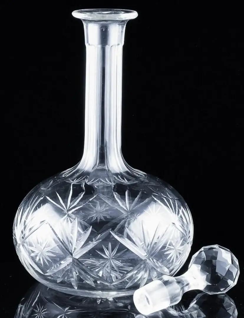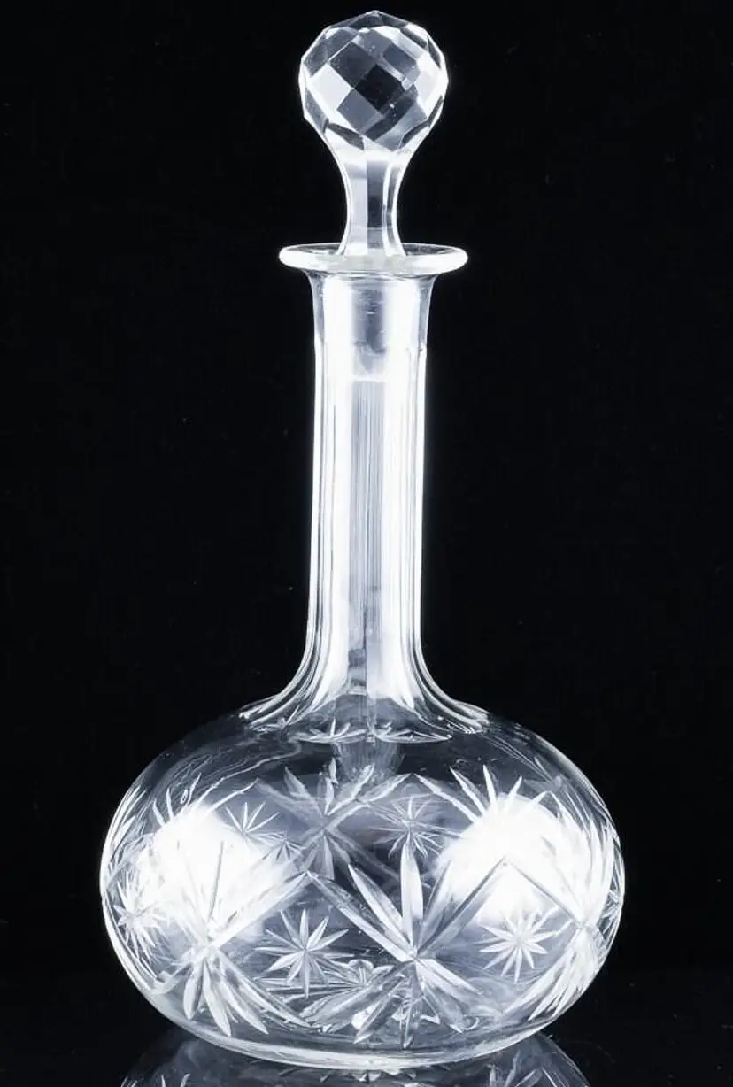 Up for sale and your consideration is a Superb Antique Cut Crystal Glass Deep Cut Star Designs Long Necked Whiskey Liquor Wine Decanter. This is a very fine example, being Antique in age and very fine quality. we believe it to be 80-100 years old, with very fine deep cut star like designs with a nice long neck. A fine piece with its original stopper as well. Perfect as a nice Liquor decanter, for a nice Scotch or Whiskey. Perfect to show off at a bar, or would make an excellent gift!