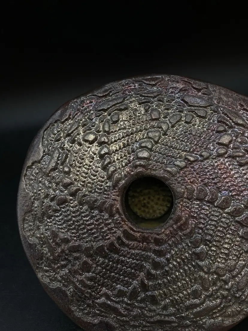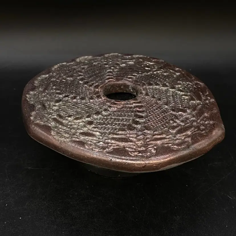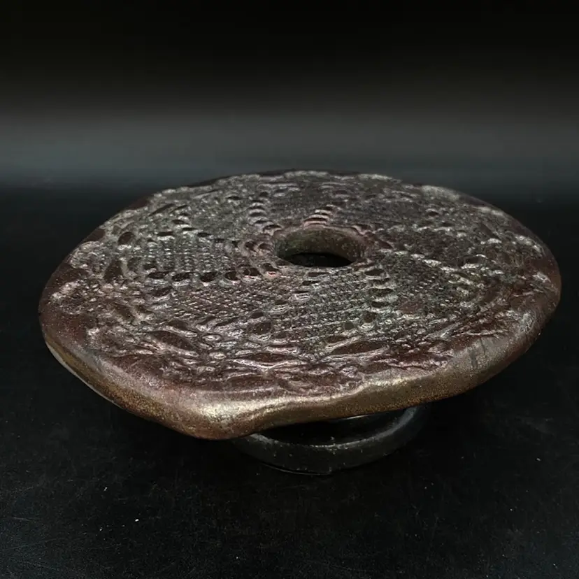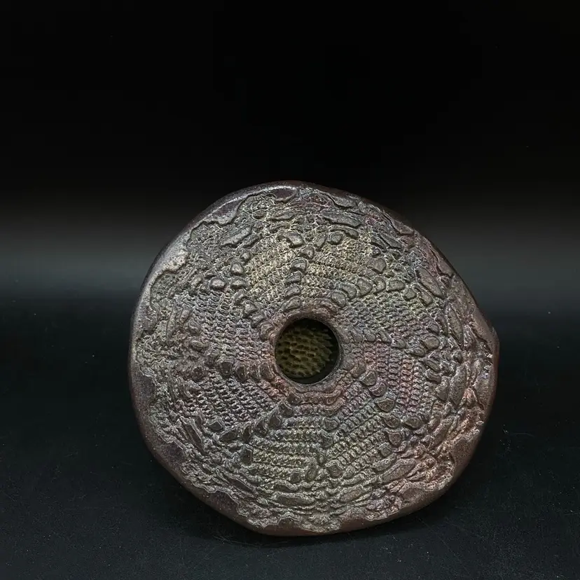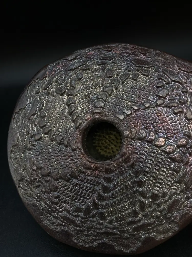 Susan Art Pottery Ikebana Flower Frog Iridescent Earth Tones very pretty as the light hits it it changes colors