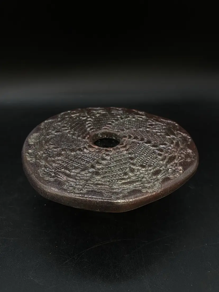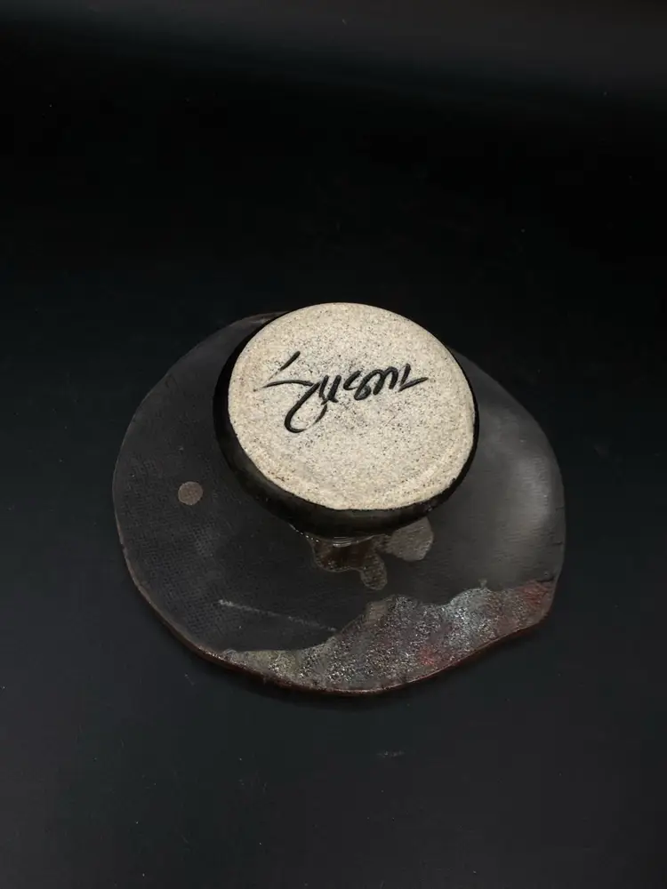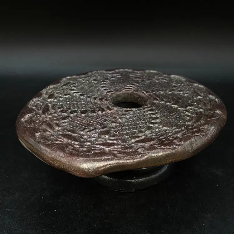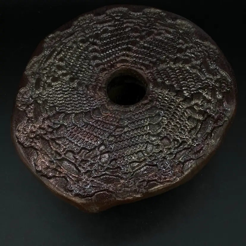 Susan Art Pottery Ikebana Flower Frog Iridescent Earth Tones very pretty as the light hits it it changes colors
