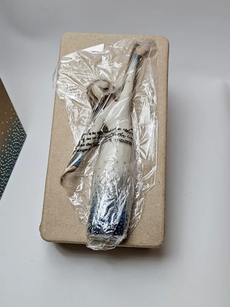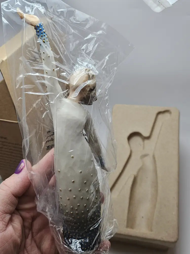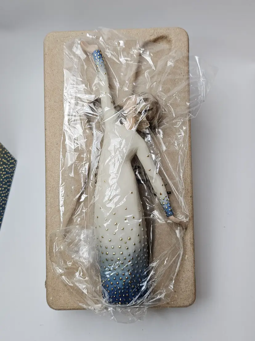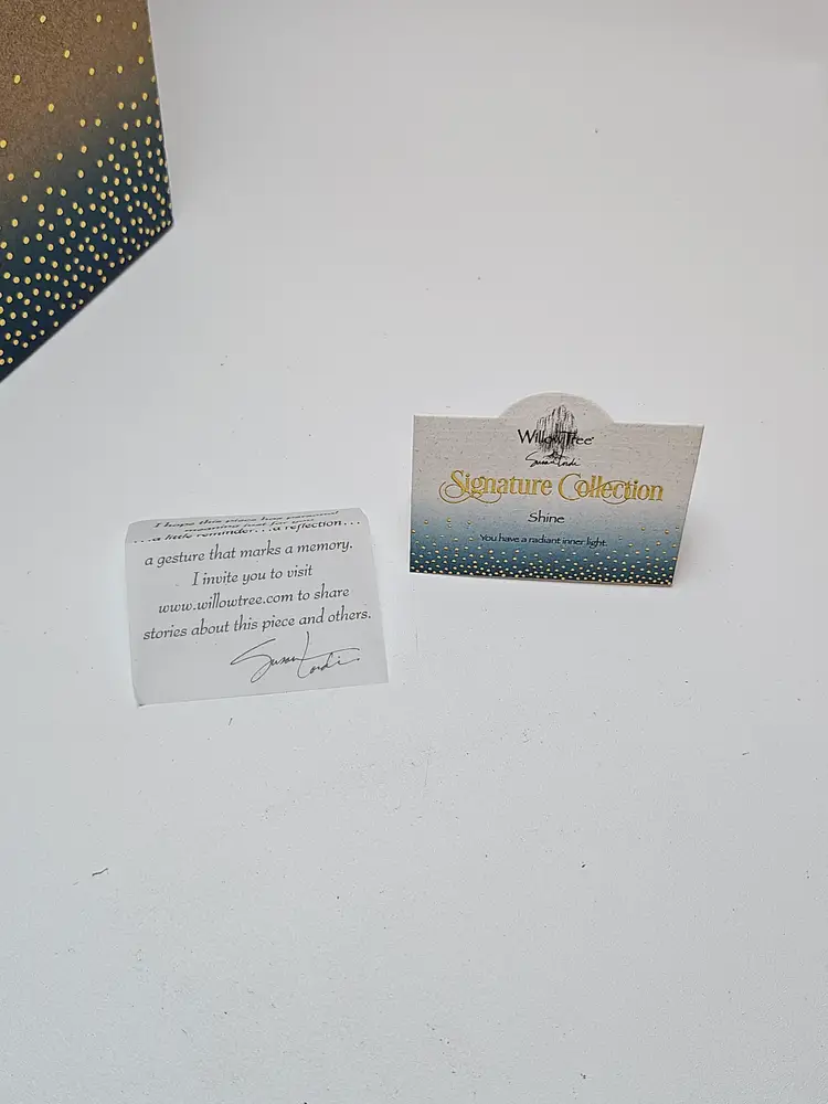 The Susan Lordi Demdaco Signature Collection Shine Figurine #27367 in Blue and Gold is a modern and elegant decorative figurine featuring an angelic person. This collectible piece from Demdaco is perfect for all occasions and can be displayed in various rooms such as the living room, bedroom, office, or study. The figurine has a beautiful blue color with a gold colored detail, adding a touch of sophistication to any space. Made in China, this unique and stylish figurine is a great addition to any collection or as a standalone piece to enhance your decor.