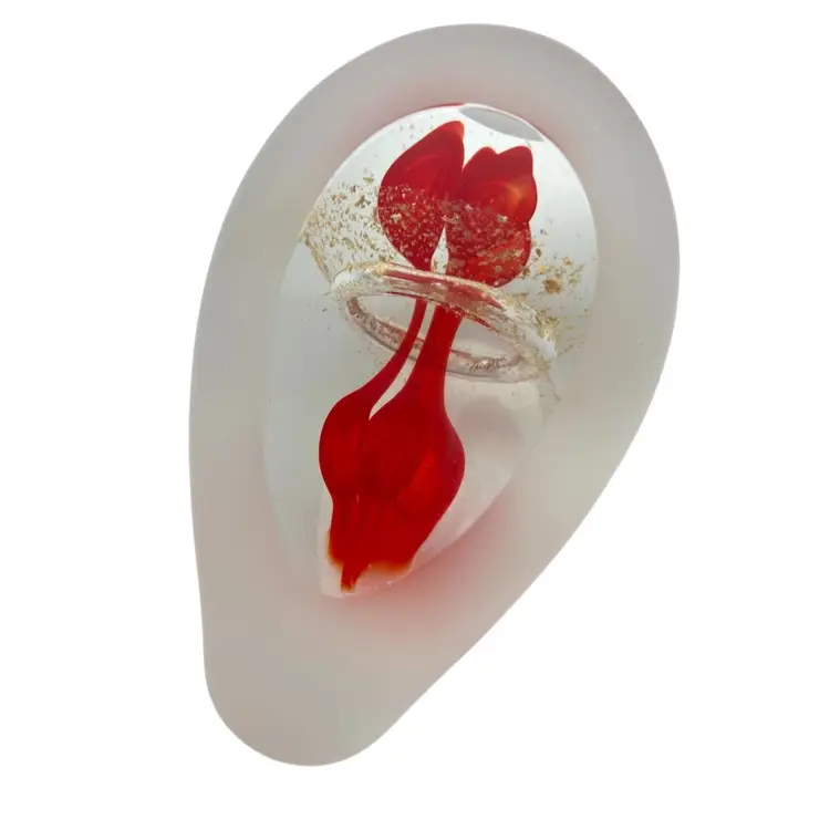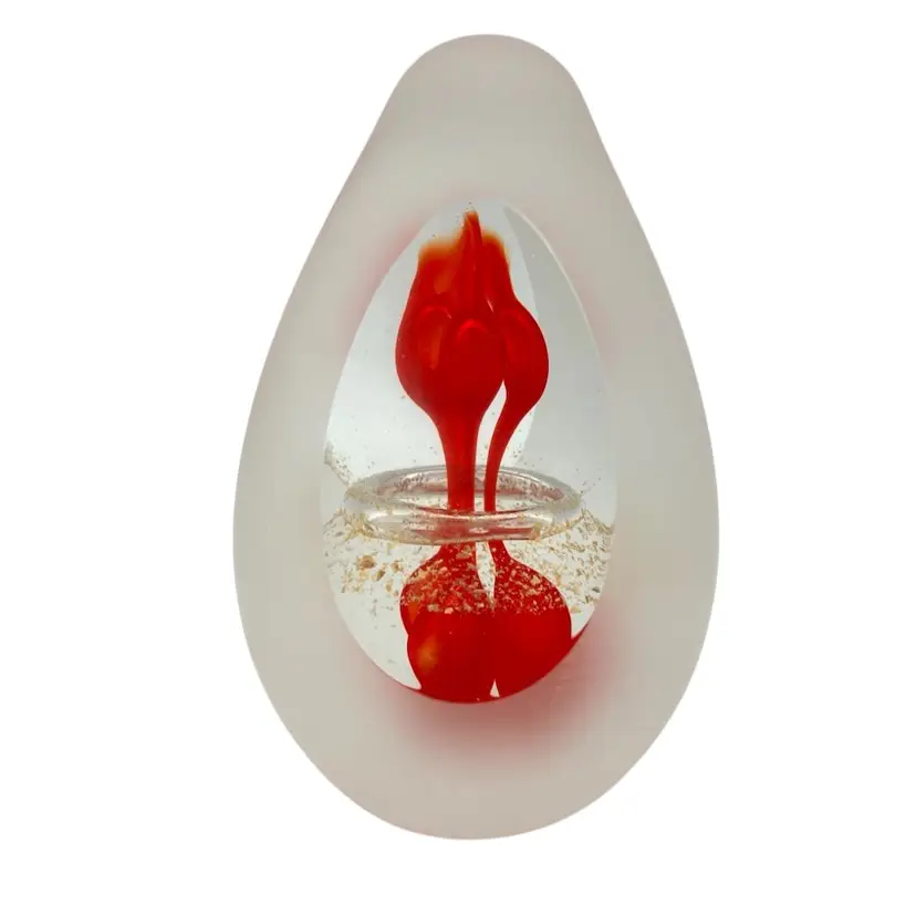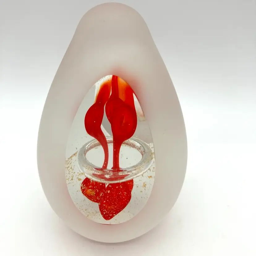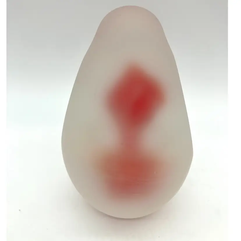 11 - Svaja Art Glass Satin Paperweight Egg Gold Fleck Red Hand Blown 4.25”