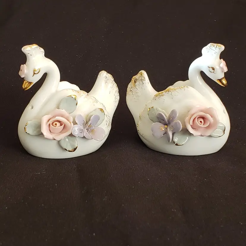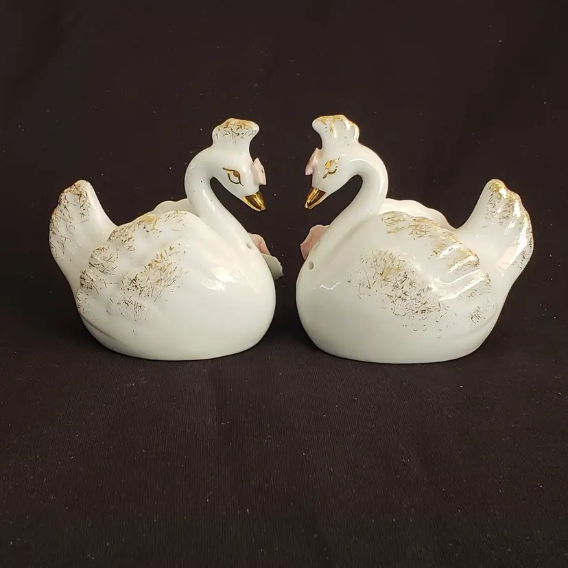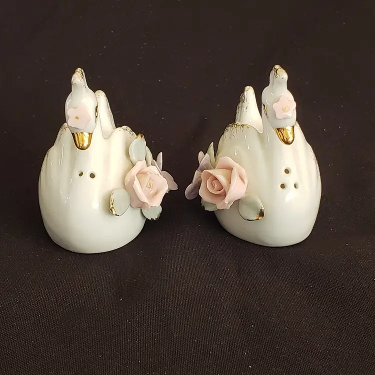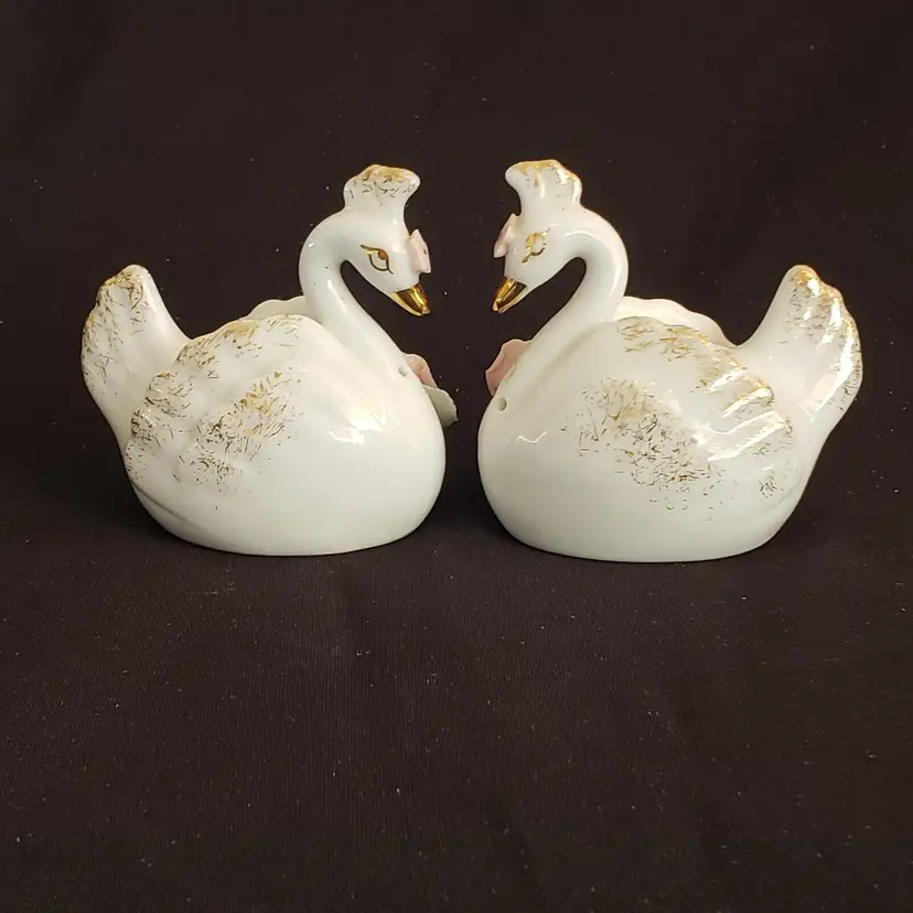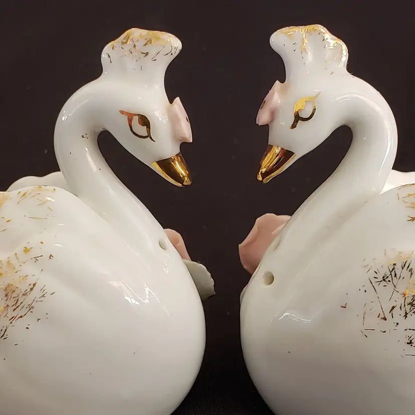 Brand: Unbranded Type: Salt & Pepper Shakers Shape: Swan Occasion: All Occasions Model: pepper shakers Style: Shaker Set Includes: Pepper Shaker, Salt Shaker Material: Porcelain Country/Region of Manufacture: Japan Vintage Swan Salt Pepper Shakers Porcelain made in Japan - both shakers damaged READ. Used condition with both shakers having broken flowers, dirt, dust. Please view all photos as they are part of the description and please ask questions prior to purchase when possible.