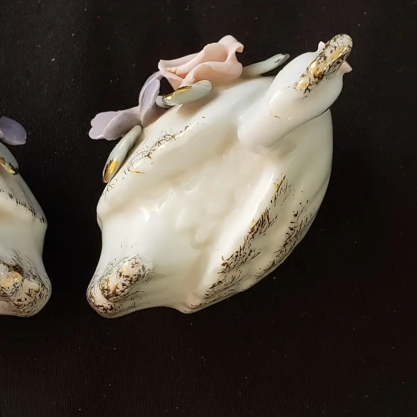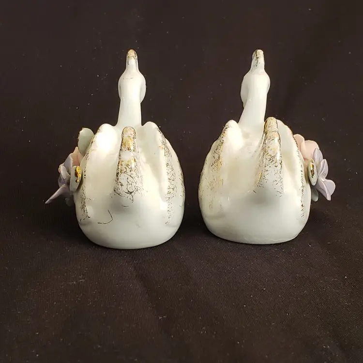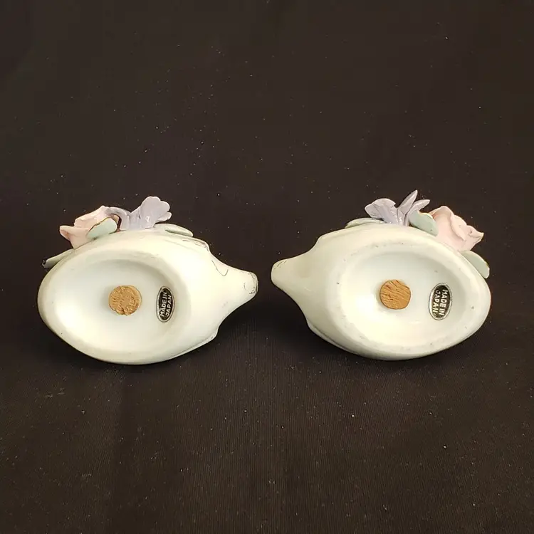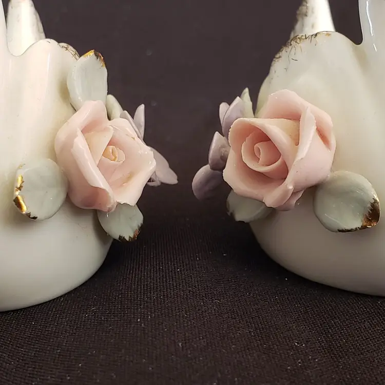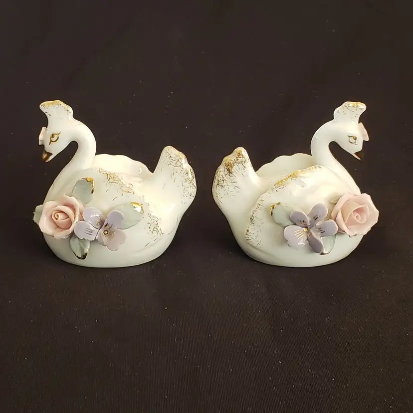 Brand: Unbranded Type: Salt & Pepper Shakers Shape: Swan Occasion: All Occasions Model: pepper shakers Style: Shaker Set Includes: Pepper Shaker, Salt Shaker Material: Porcelain Country/Region of Manufacture: Japan Vintage Swan Salt Pepper Shakers Porcelain made in Japan - both shakers damaged READ. Used condition with both shakers having broken flowers, dirt, dust. Please view all photos as they are part of the description and please ask questions prior to purchase when possible.