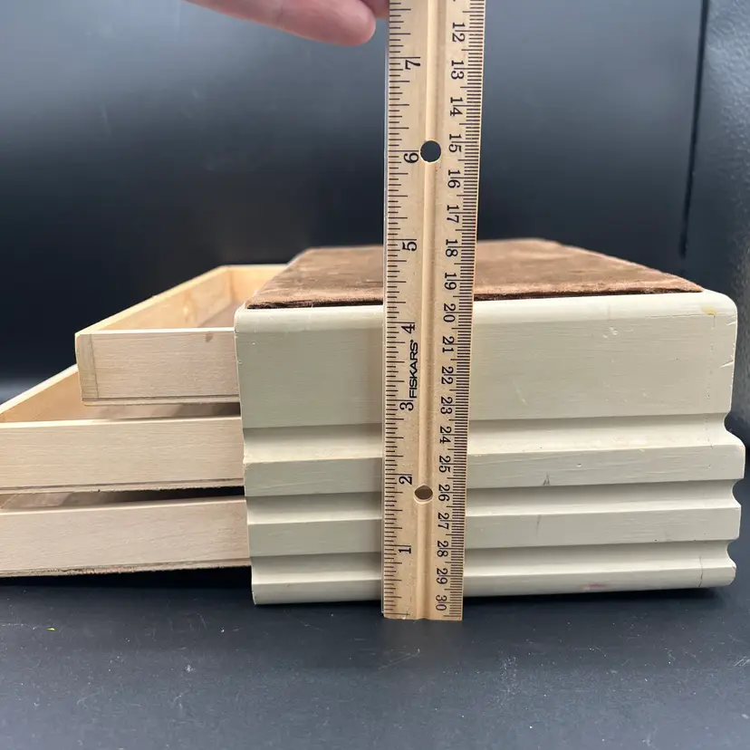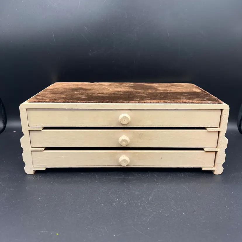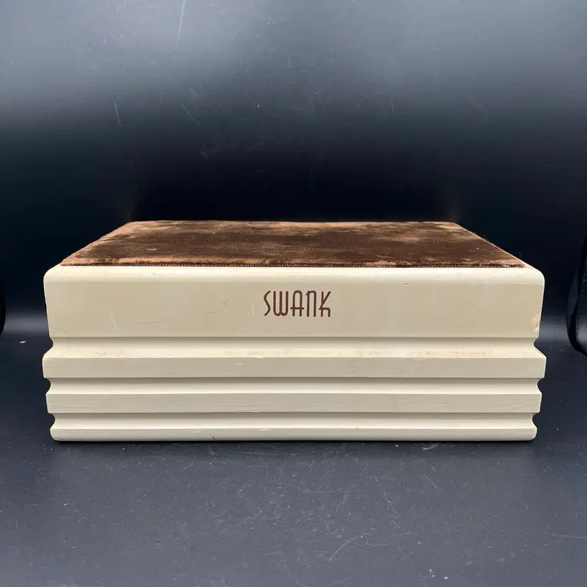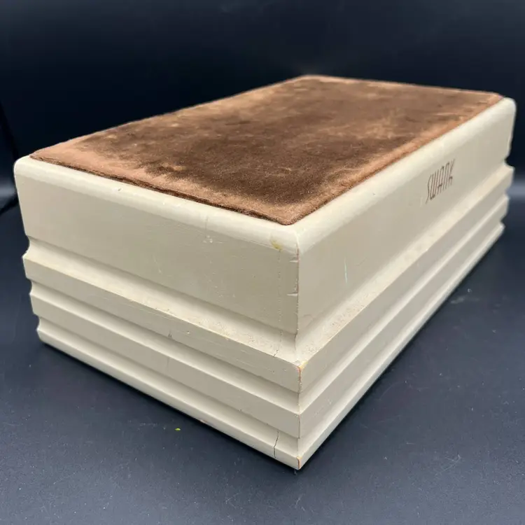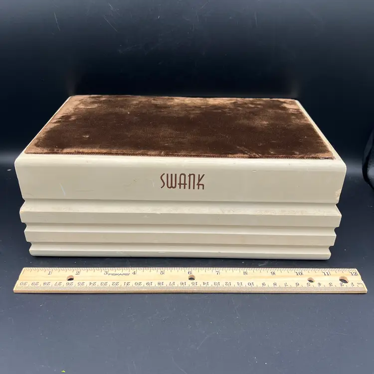 SWANK Display Jewelry Box 3 Drawer Wooden Brown Velvet Fabric Top 12"
