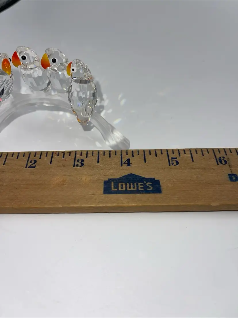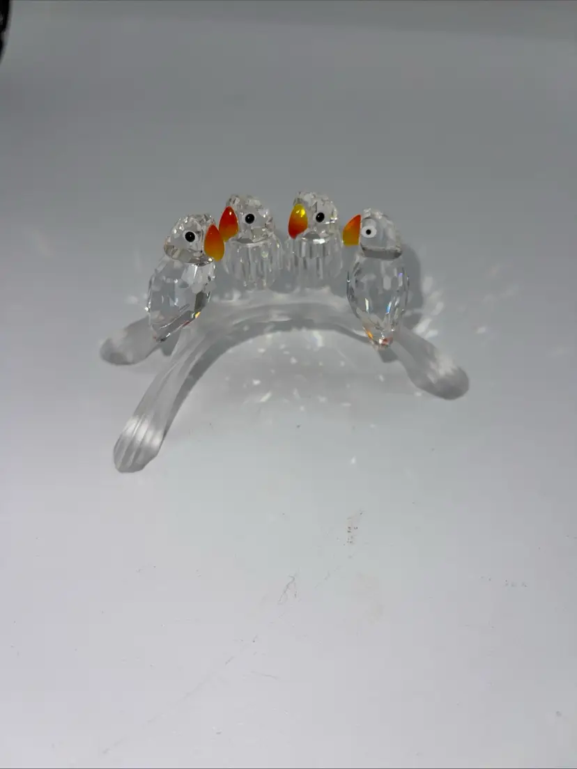The branch that the lovebirds are sitting on is frosted this is marked with the Swarovski Swan. I do not have the original box, but it will be packaged for safe shipment.