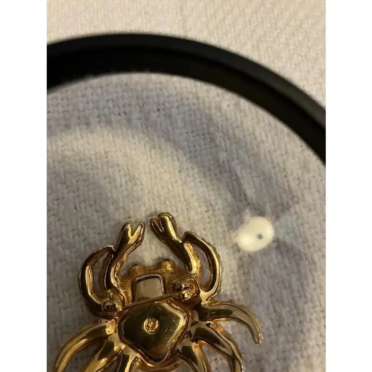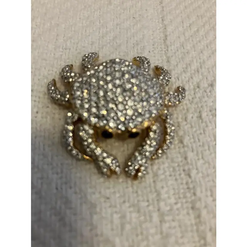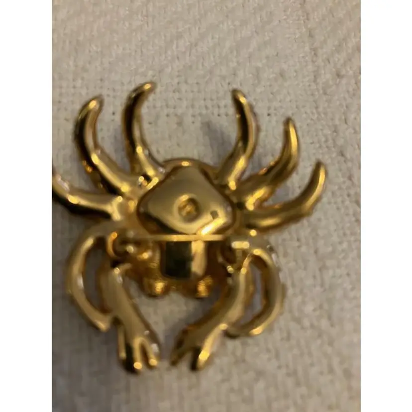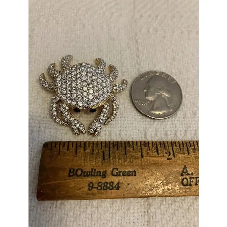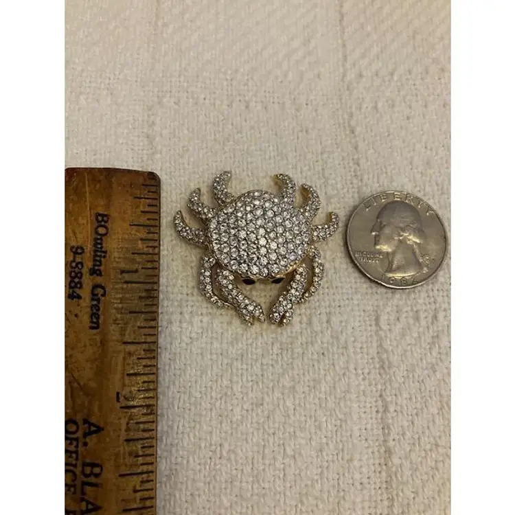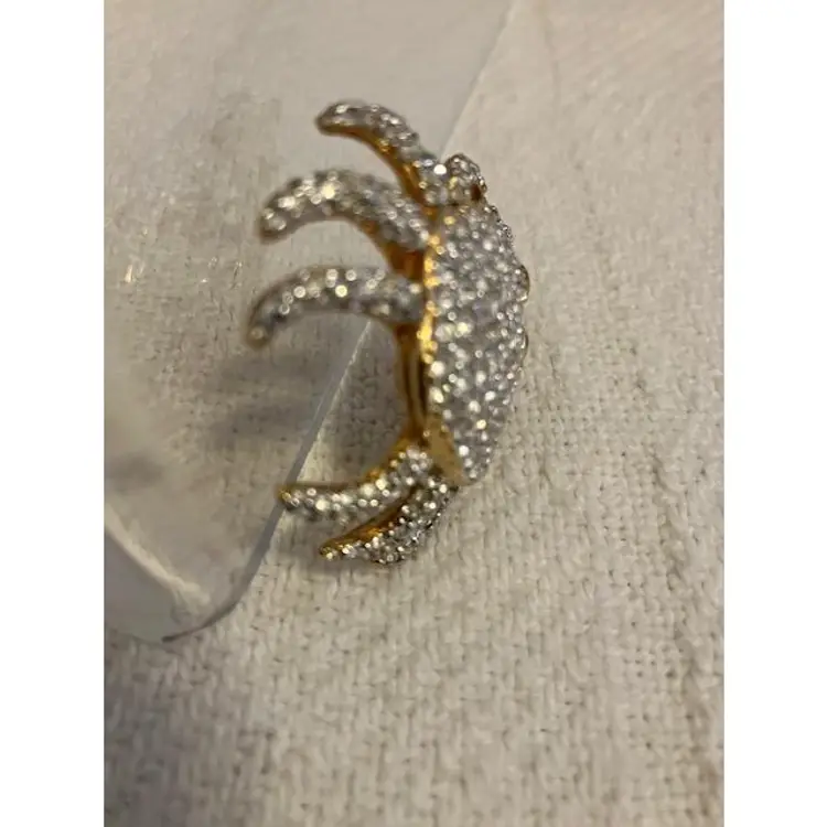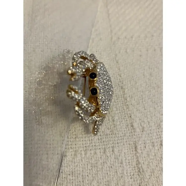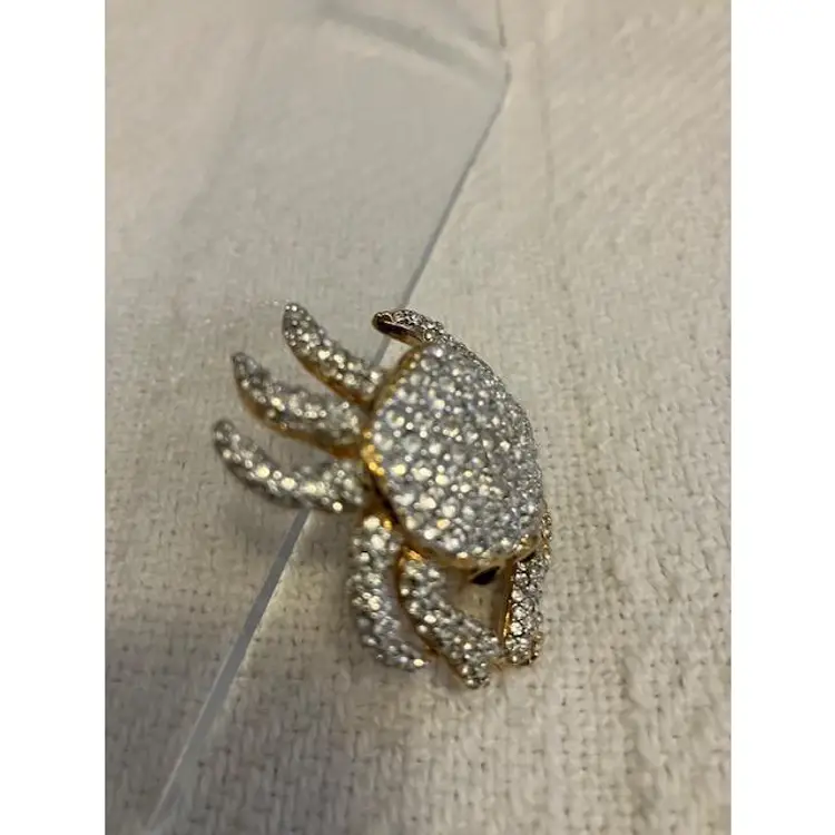 Swarovski crystal crab Cancer zodiac sign brooch. Gold tone with crystals. Black eyes. 1 1/2" x 1 1/2". Rollover clasp. Signed with the Swarovski swan. Excellent condition.