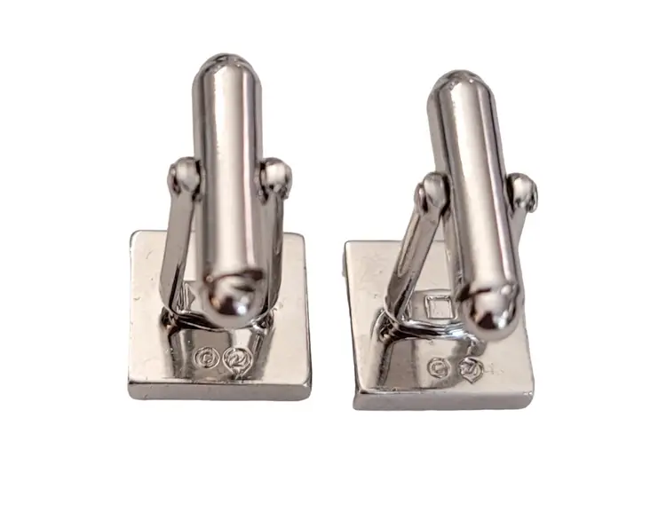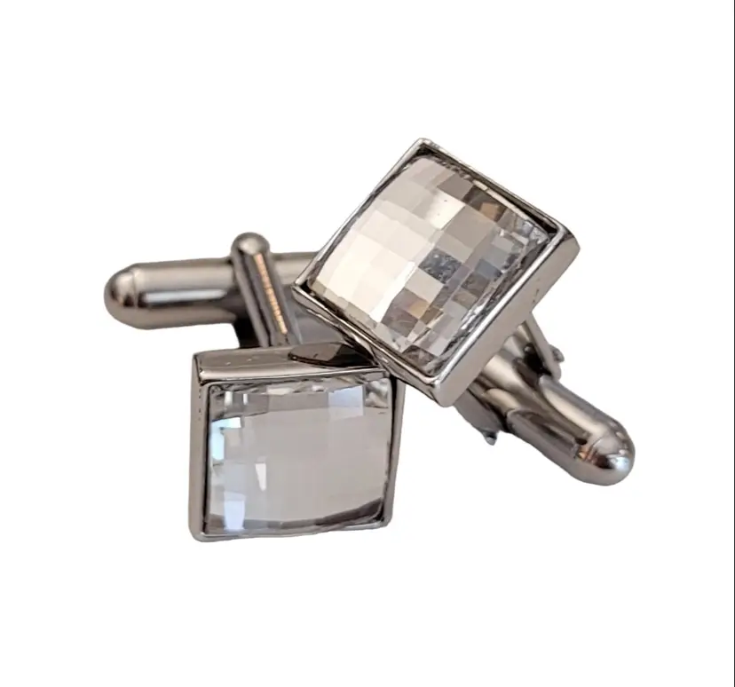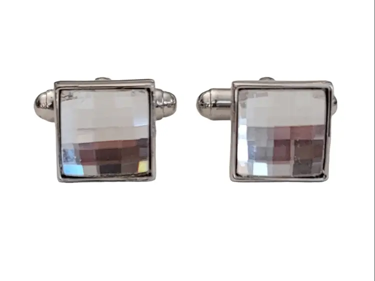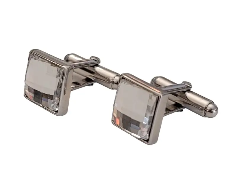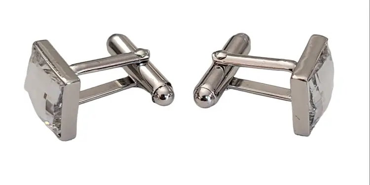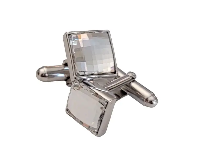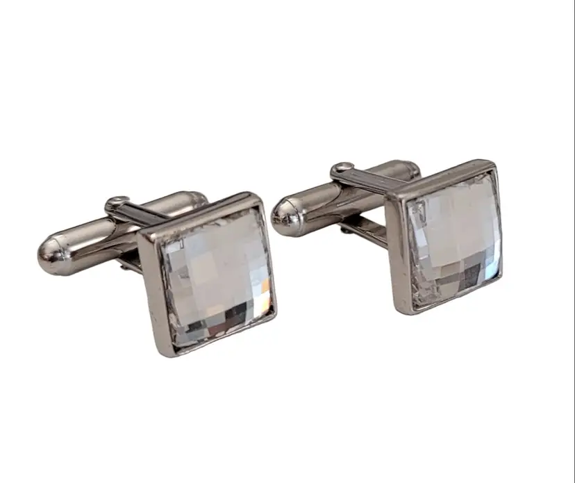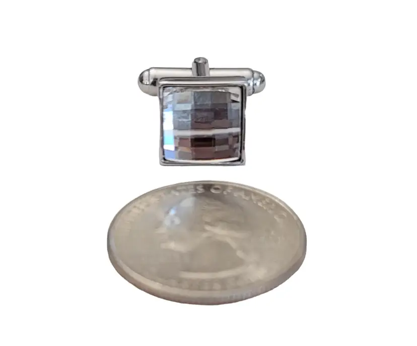 Cufflinks have been men's standard and classic accessories for generations. These cufflinks are a classicly elegant undertone for officewear and formal outfits. This pair of Cufflinks feature clear Swarovski Crystals embedded on a silver tone base. Each cufflink measures approximately 0.4 inches in size. Both are marked with a swan logo on the reverse. The toggle closure ensures that these cufflinks stay on your shirt throughout your productive day.