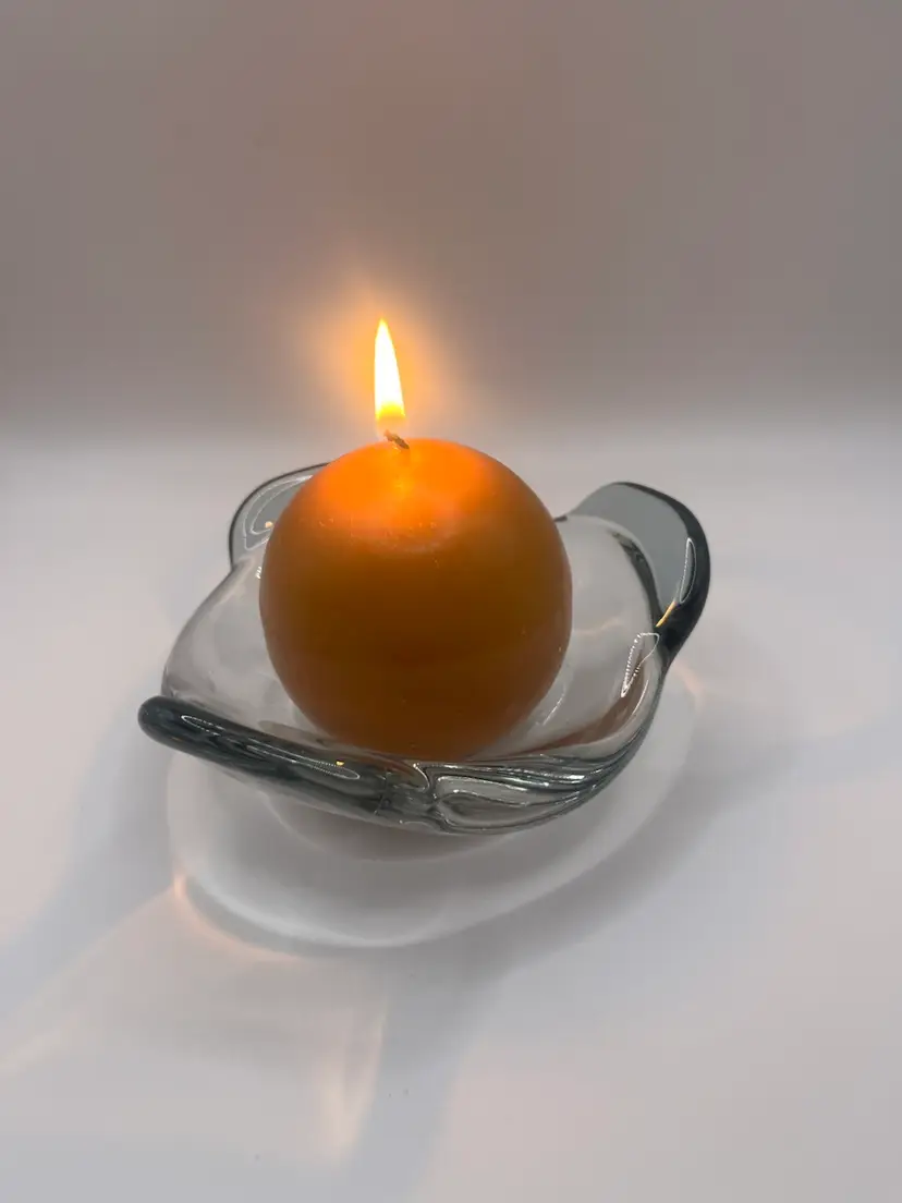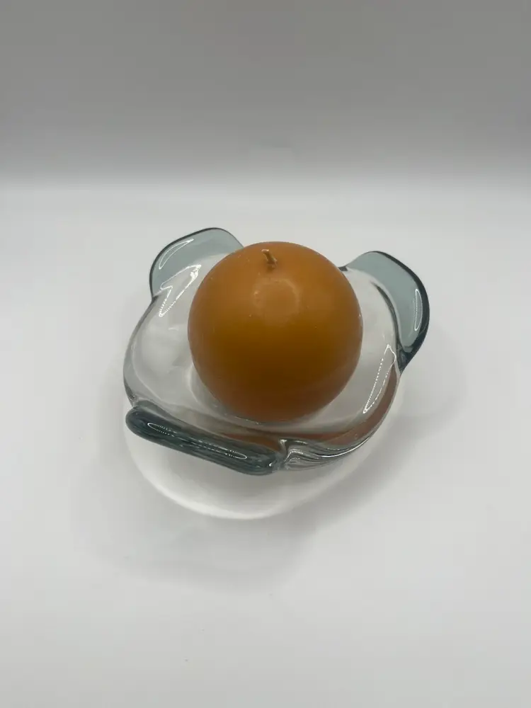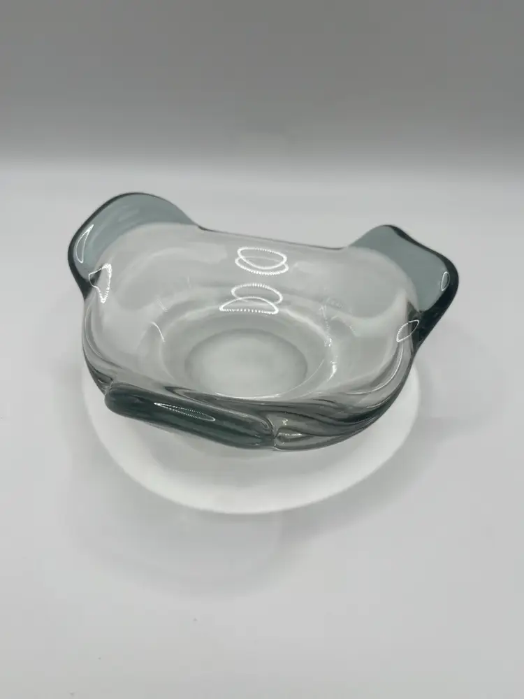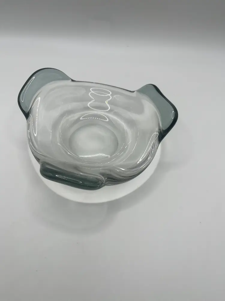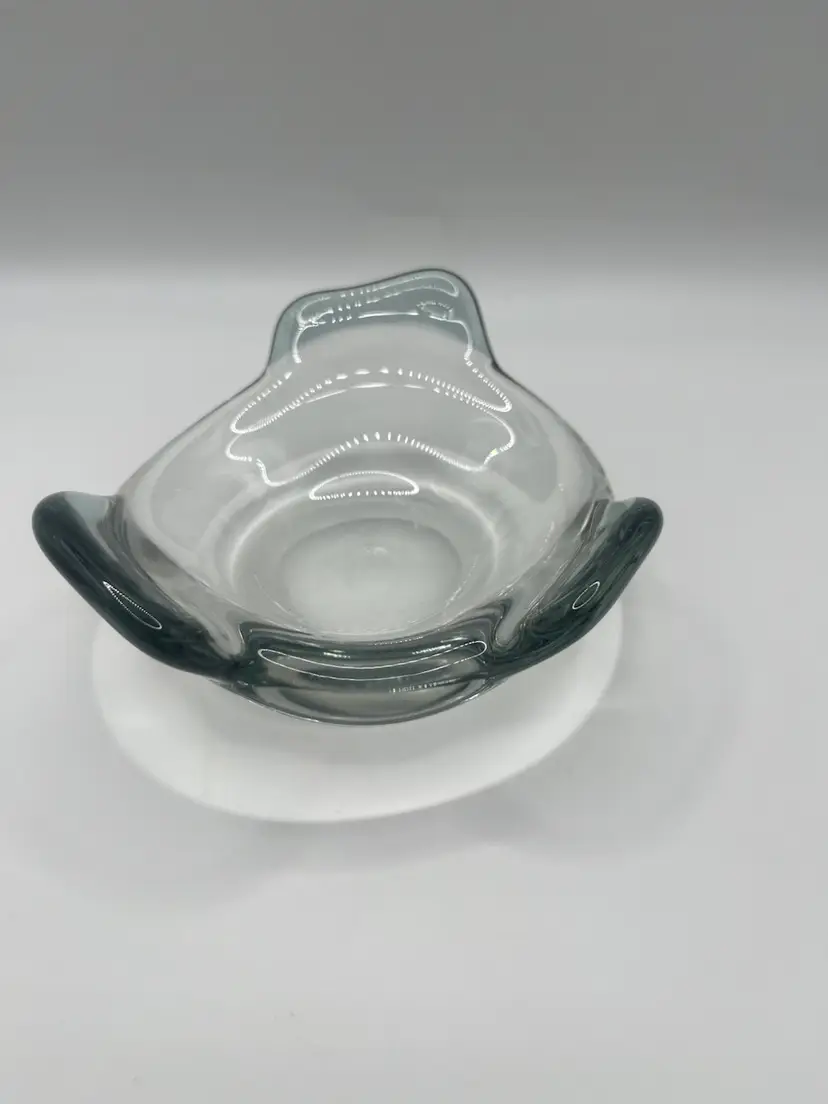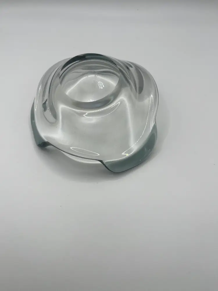 This beautiful, heavy piece of Swedish glass could be used as a candle holder or a trinket dish. It is marked “Swedish glass” on the bottom. 17oz 5” across 2” height Great condition with no chips or cracks