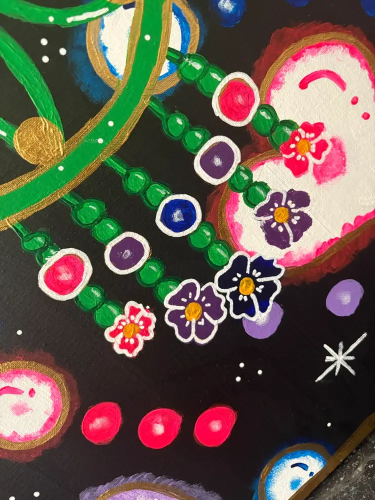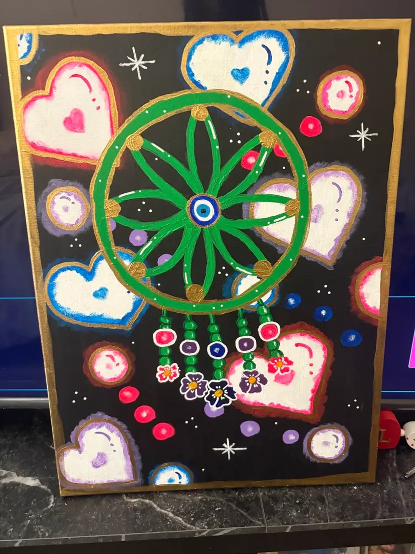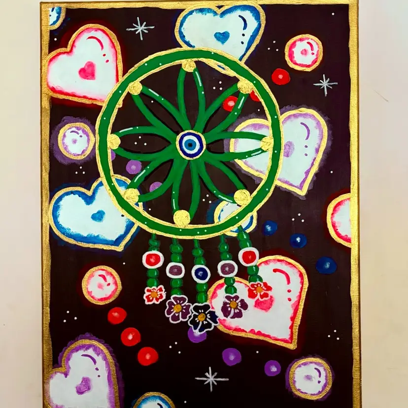 This painting was inspired by one of my previous paintings titled “LoveSick”. My best friend suggested to add the dreamcatcher as i felt something was missing, and it went perfectly 💕