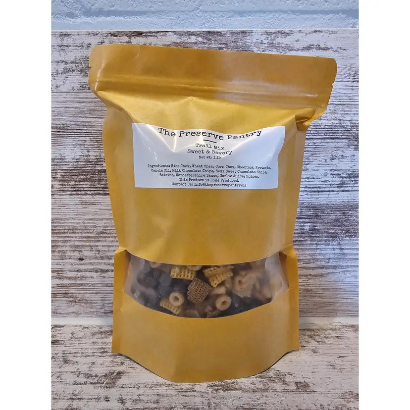 Craving a snack that's both sweet and savory? Satisfy your taste buds with our irresistible Sweet and Savory Trail Mix. Made with a delicious blend of Chex cereals, pretzels, and chocolatey chips Infused with a zesty Worcestershire and garlic seasoning for a bold, mouthwatering flavor. Packed with wholesome ingredients like raisins for a touch of sweetness. Perfect for snacking, hiking, road trips, or anytime you need an energizing boost. This trail mix is the ultimate indulgence for your senses. The salty crunch of the pretzels and Chex mingles with the rich sweetness of the chocolate chips and raisins, creating a flavor explosion in every bite. Whether you're looking for a satisfying on-the-go snack or a shareable treat, our Sweet and Savory Trail Mix will elevate your snacking experience.