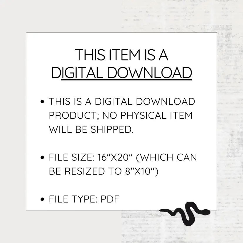 -Sizes Available: 16"x20" PDF file which can also be downsized to 8"x10"