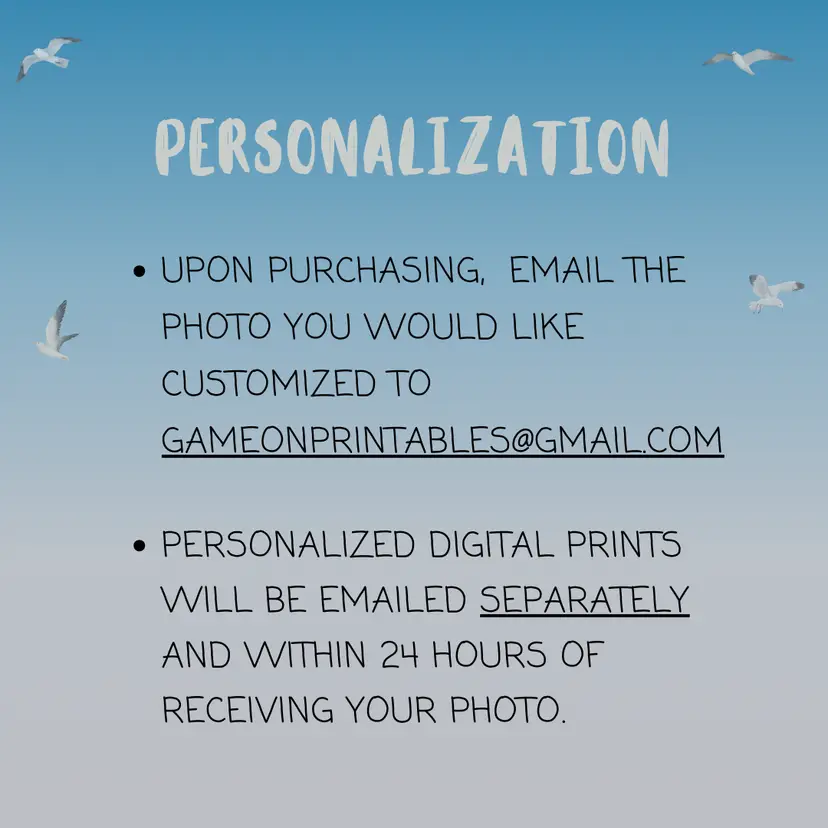 -Your personalized print will be emailed and ready for download and printing within 24 hours!