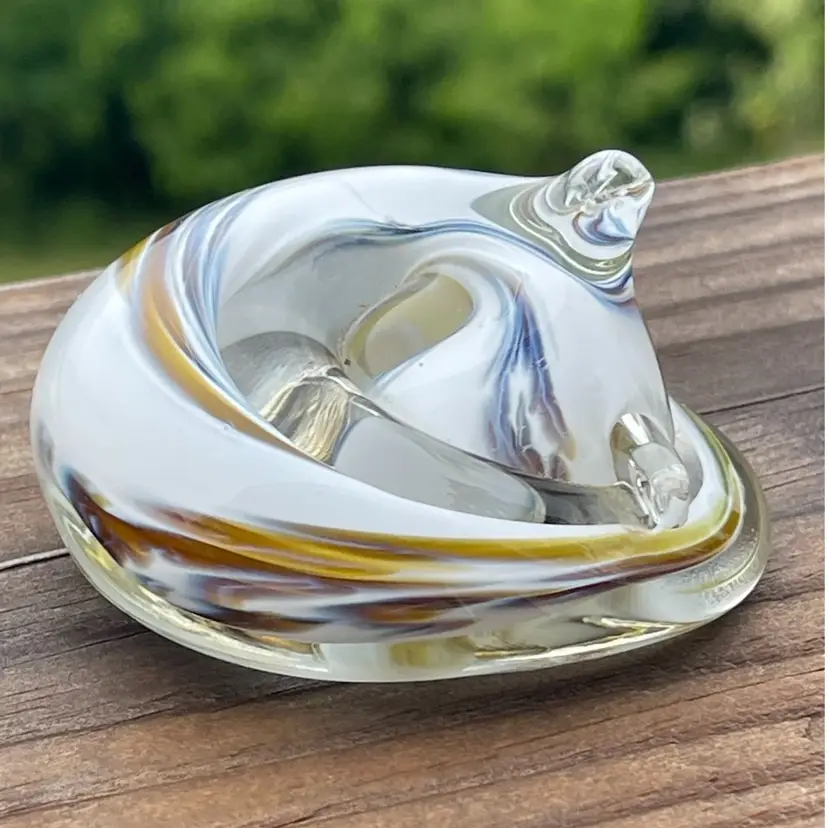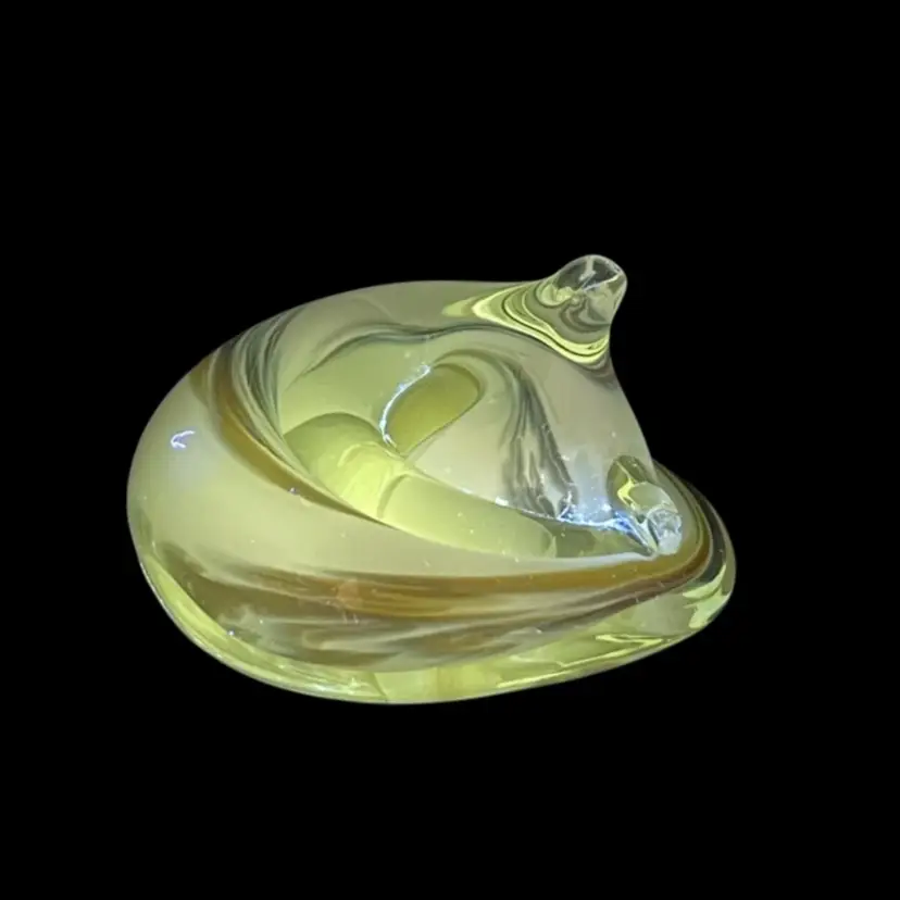 While the exact maker is unknown, similar styles have been produced by glass studios worldwide. With its smooth lines and curled tail, this cat makes a beautiful display piece or paperweight, especially for lovers of feline decor or studio glass.