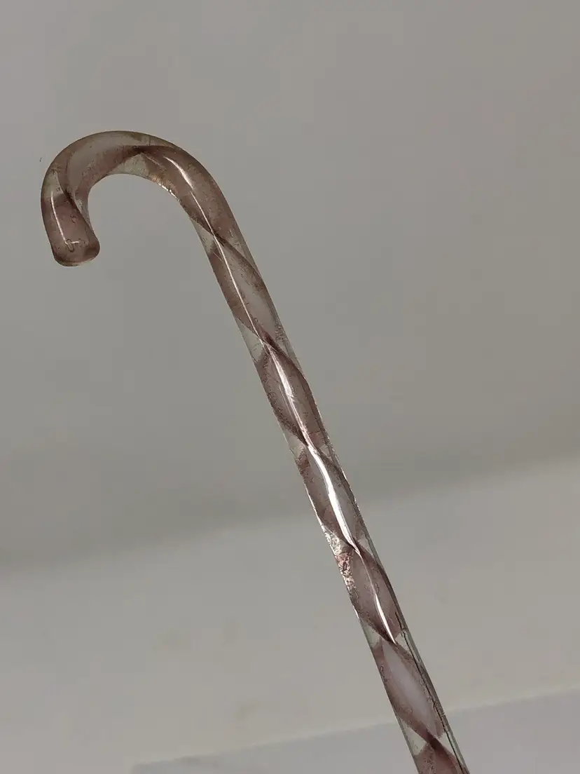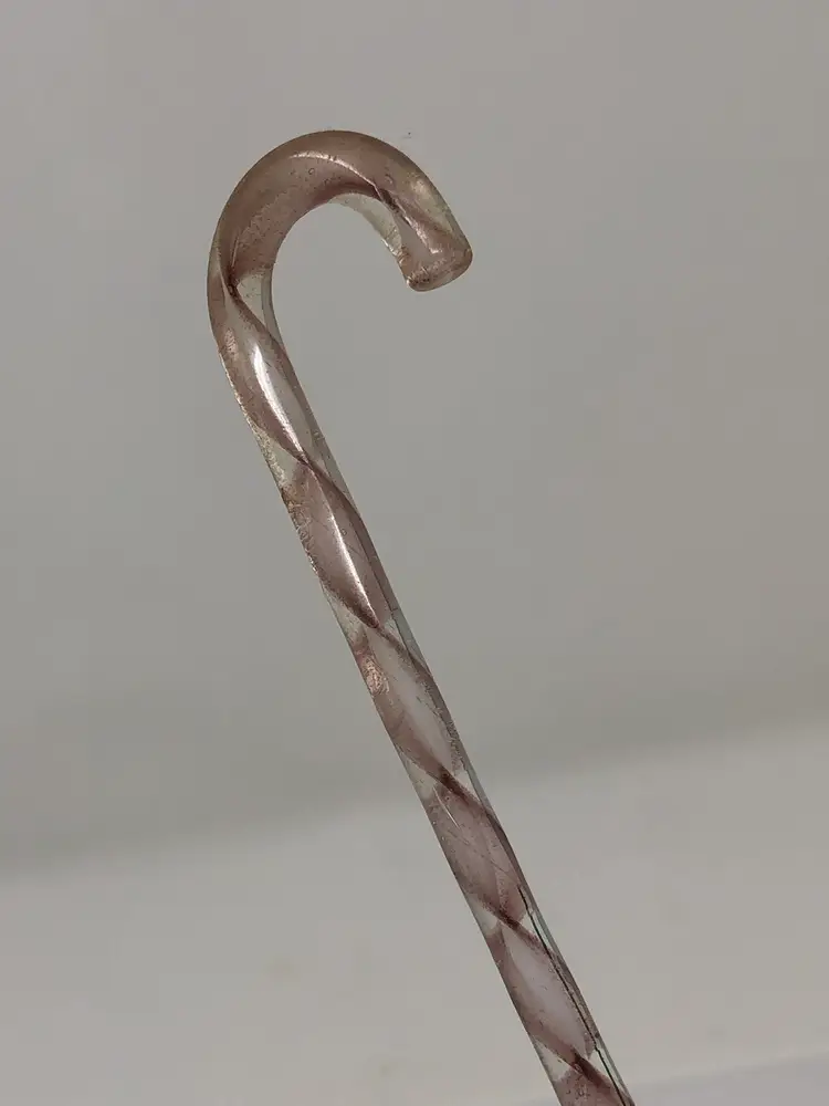5 1/2" glass swirl candy cane. No markings or labels, no chips or cracks