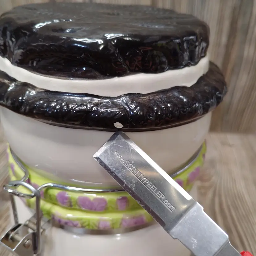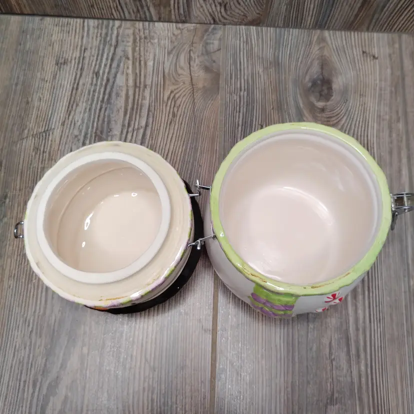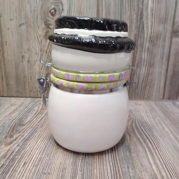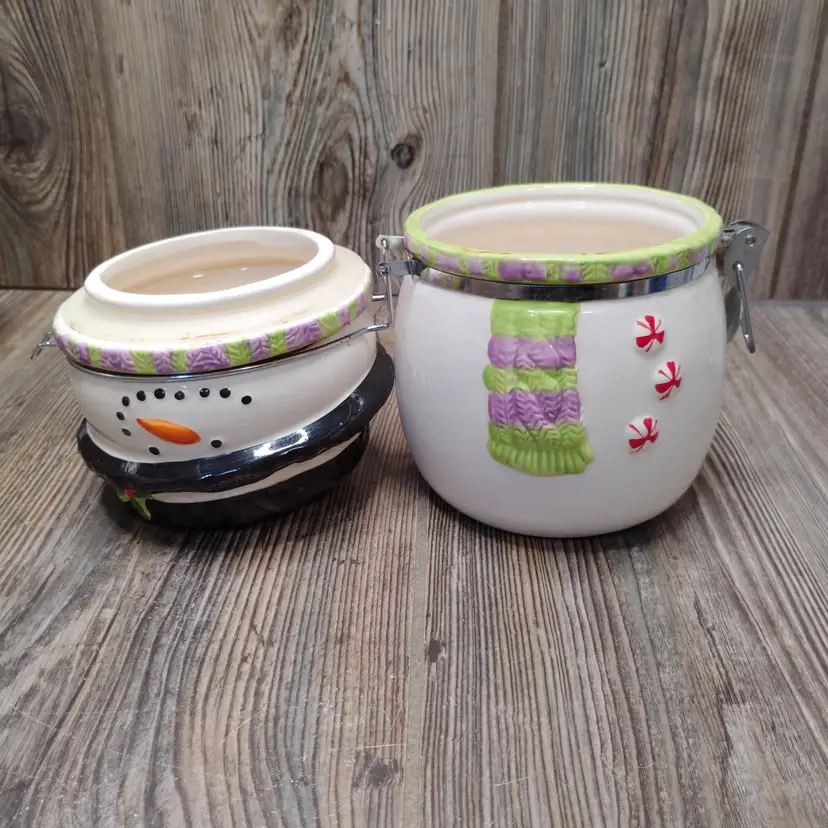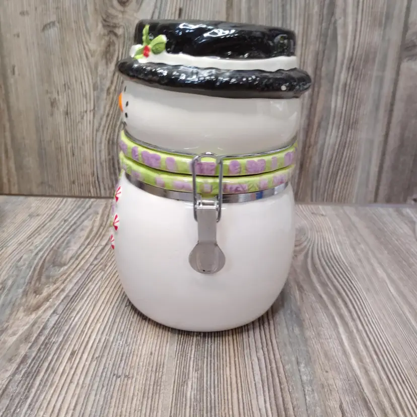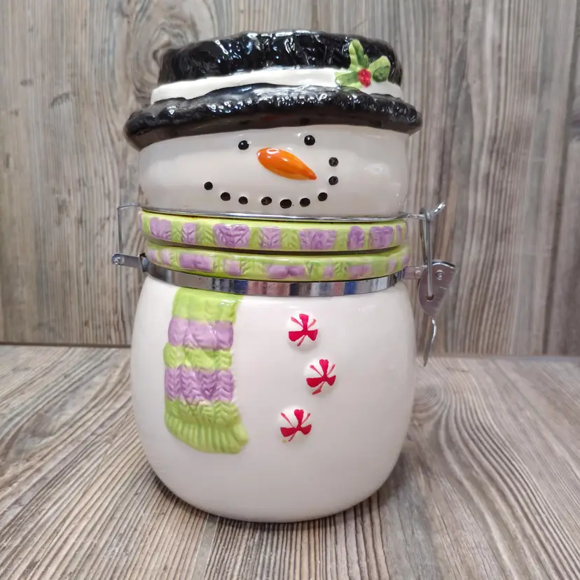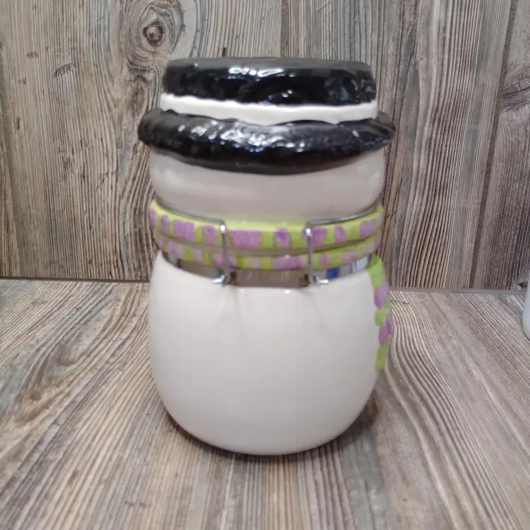 Cute cookie jar with winter theme.