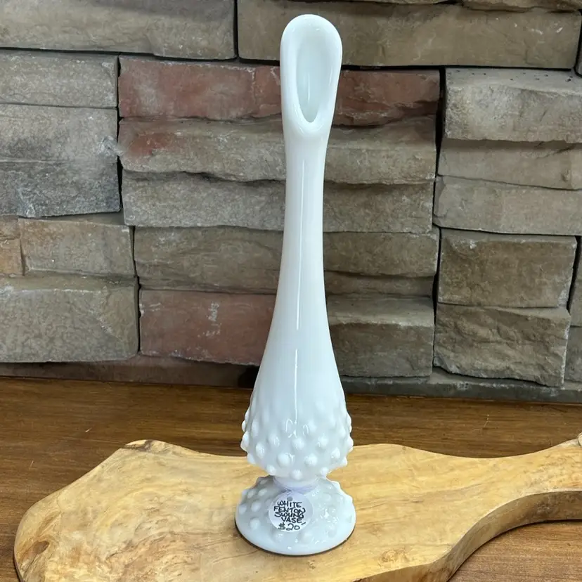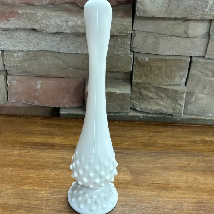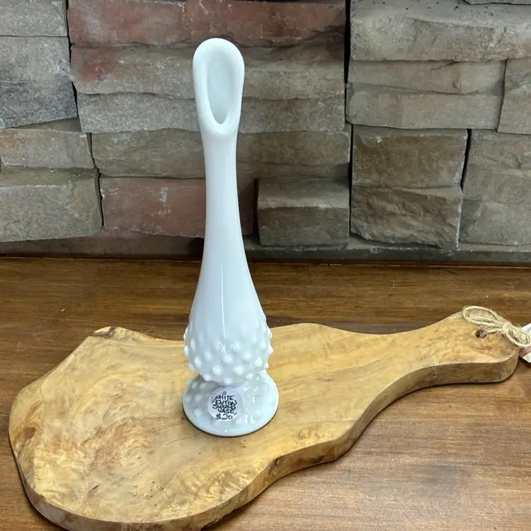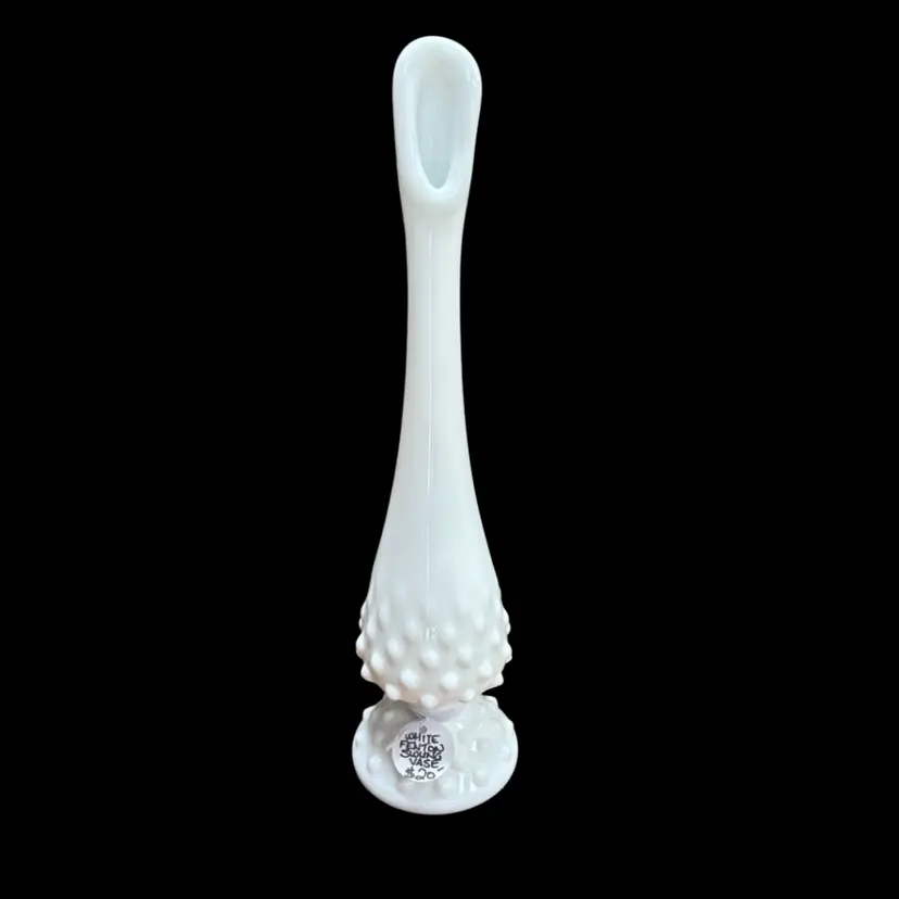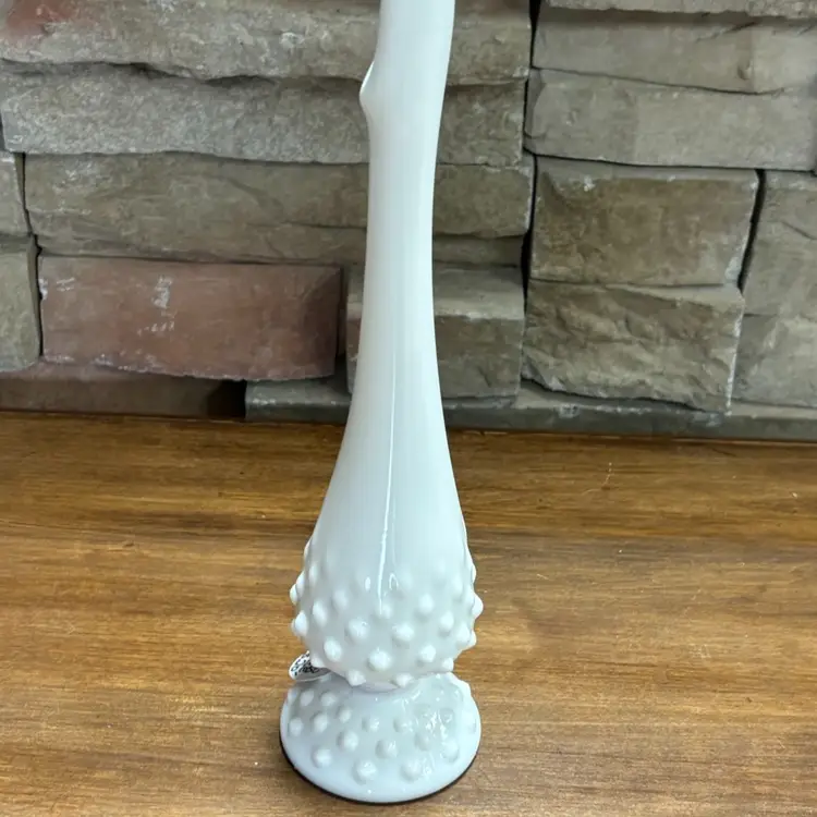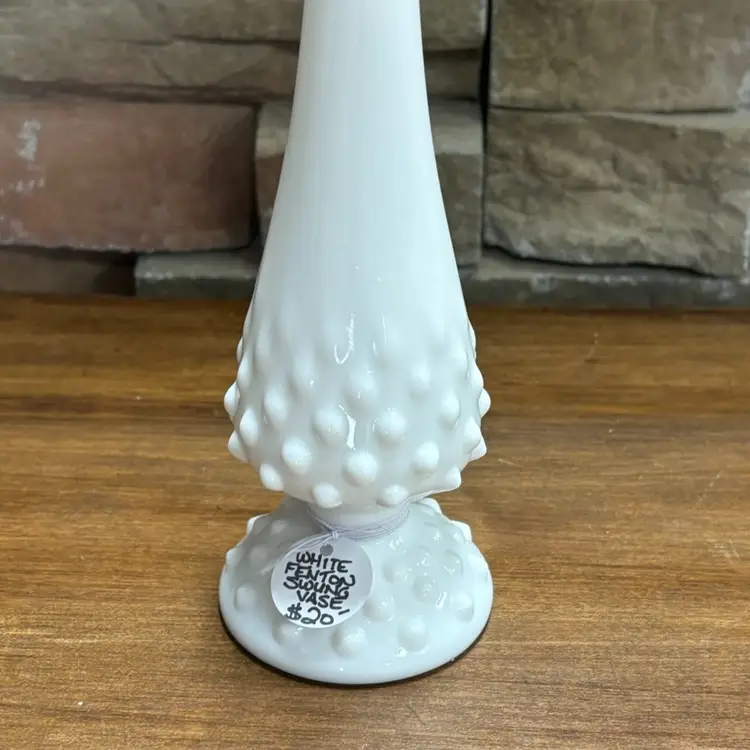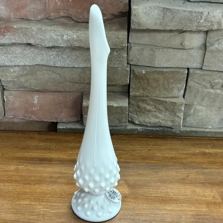 White Hobnail Swung Vase Signed Fenton 10.25" Tall Excellent Condition
