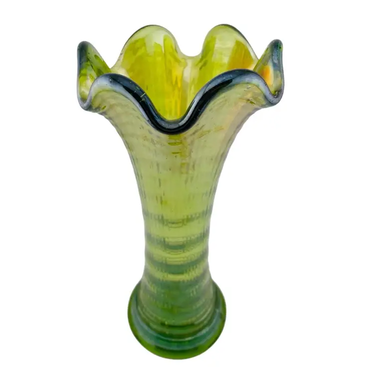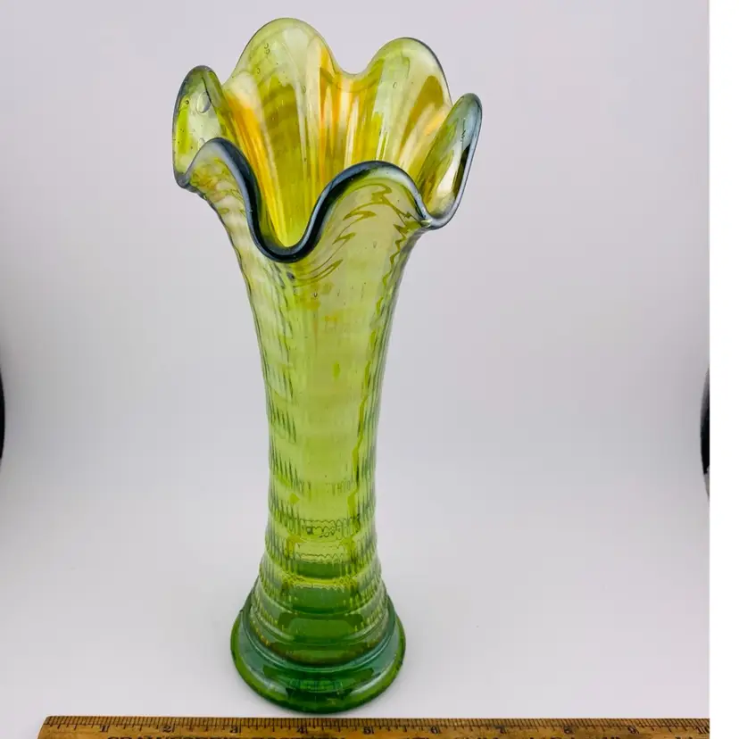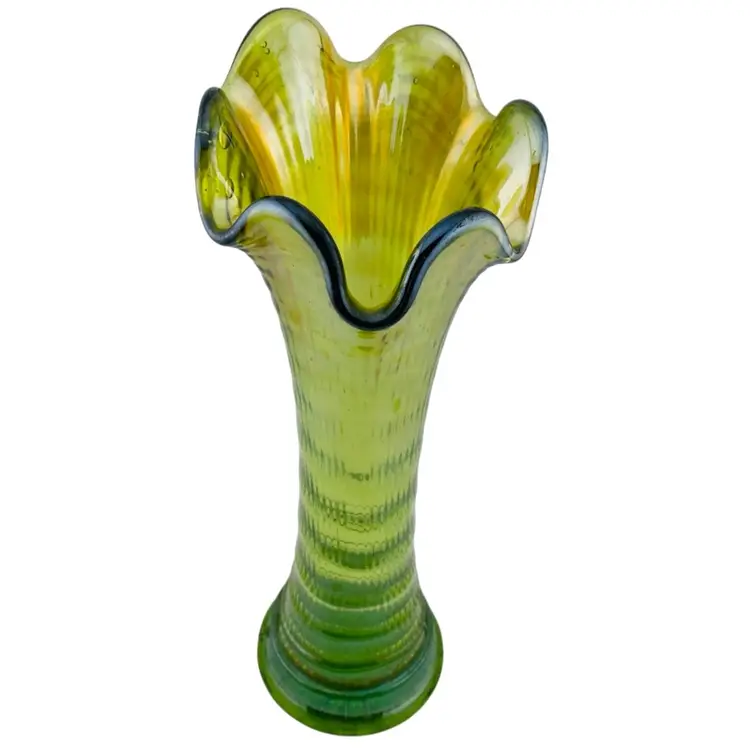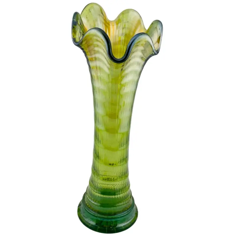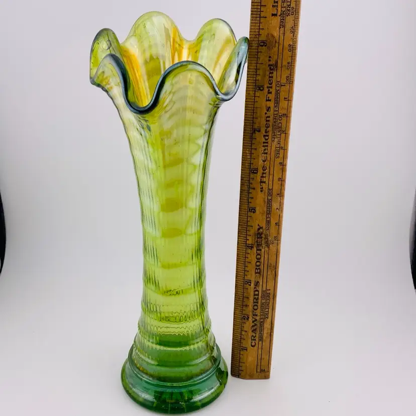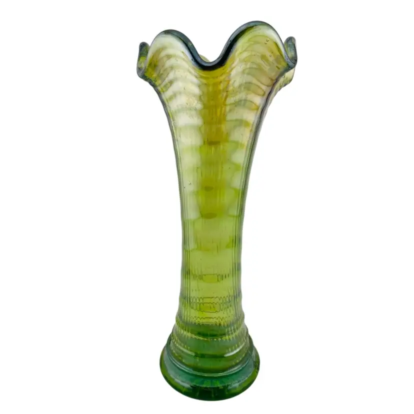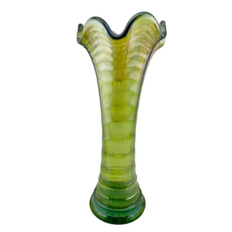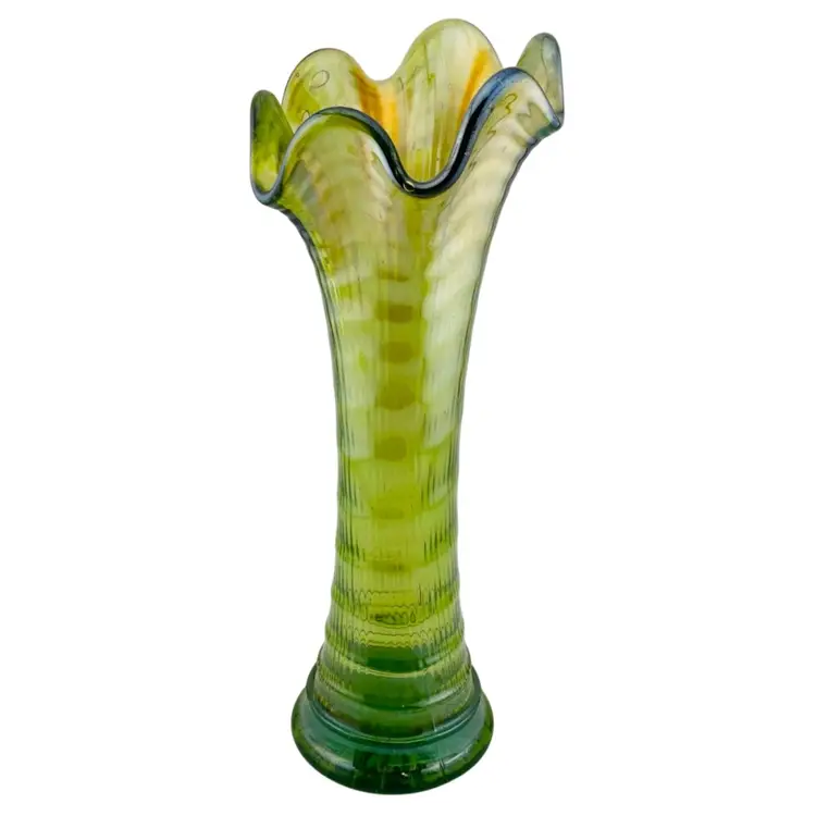Swung Vase Ripple Green Carnival Imperial Glass Vintage Retro Granny