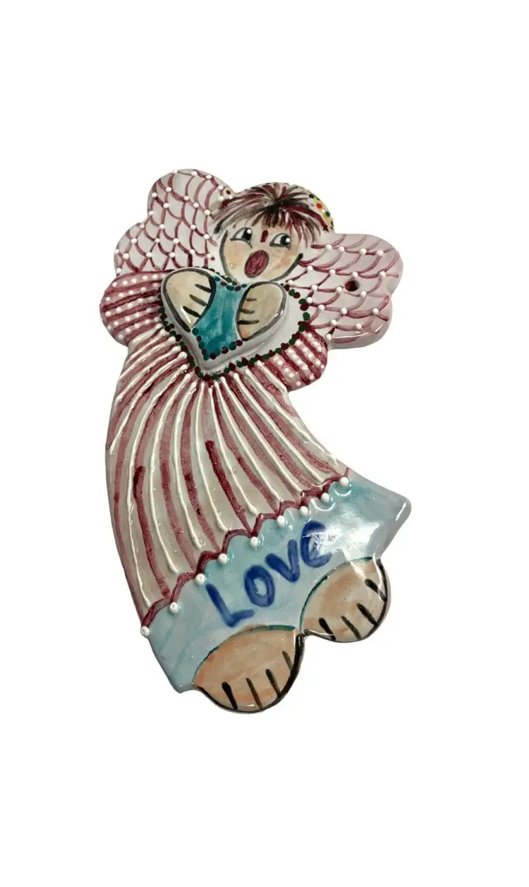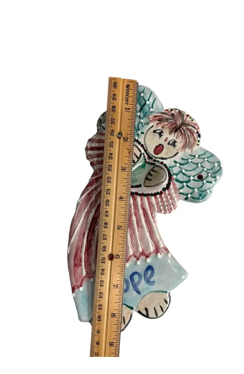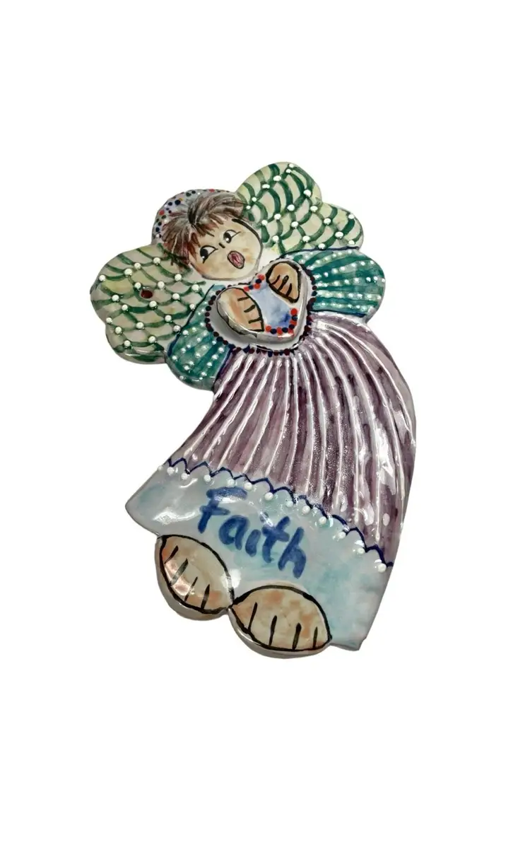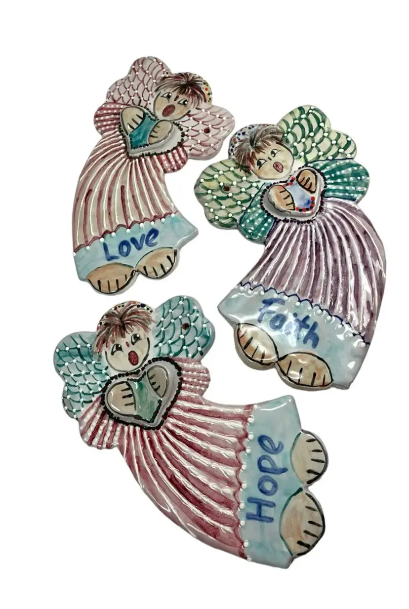 Faith, Hope, Love. Hand painted. Terracotta Wall Plaques. Set Of 3. Length 9”, width 5.5”. No chips or cracks.