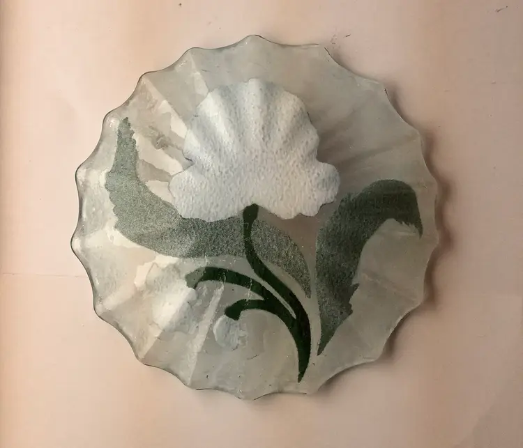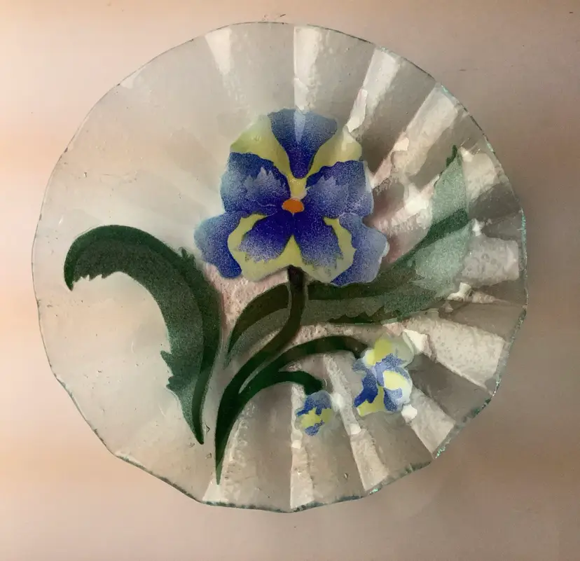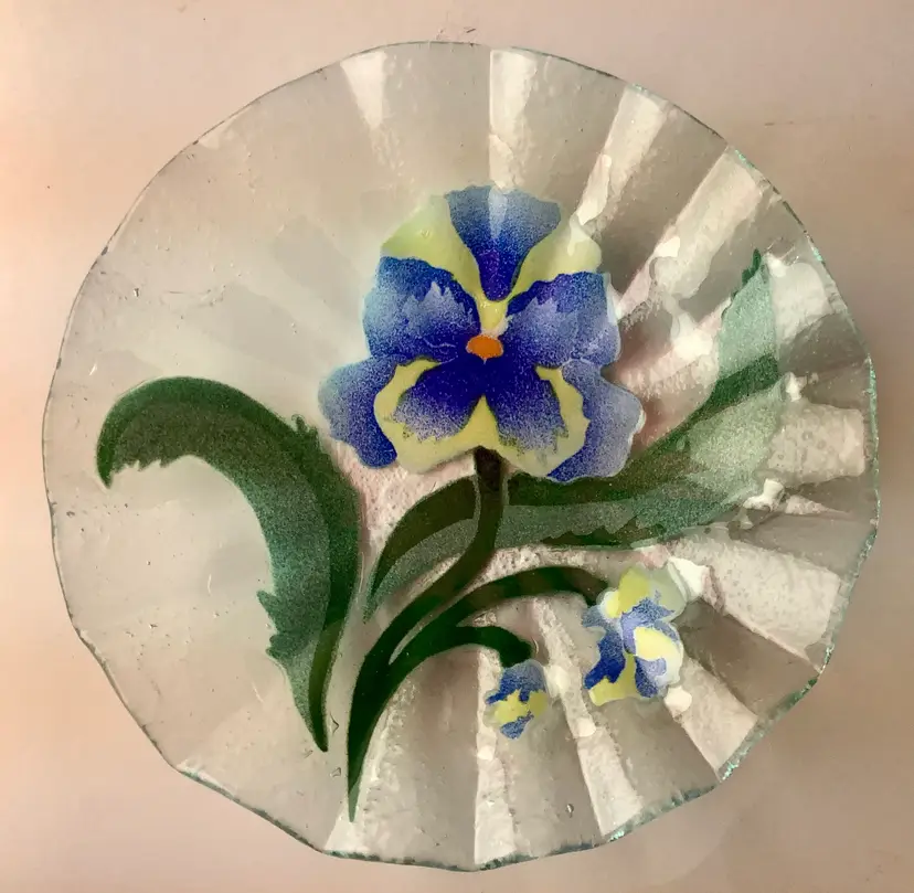 Beautiful Sydenstricker, nice condition, measures 6.25β. Fused art glass ruffled plate. Please see photos. I appreciate your interest very much! I ship 3 day UPS, pack very securely for Safe transit. Thanks! ππΌππ₯