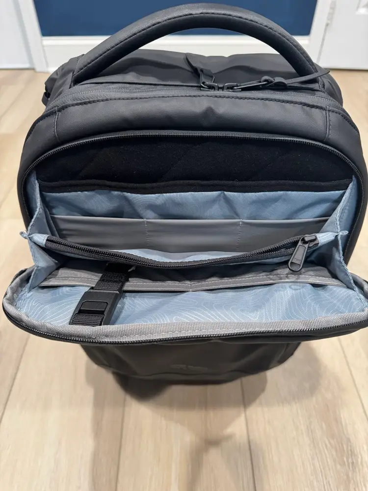 This has been the best business/travel/EDC bag I’ve ever owned. The organization is great, allowing a place for everything I carry. The top quick access pocket is great for travel, with easy access and storage for all the things I need to get to easily when traveling for work. It packs a ton, and the clamshell opening is great for getting all my packing cubes in there. The hidden water bottle holder is great too, reducing bulk on the outside when on the move. It’s super clean and in like new condition. I even packed it back in all the original packing material so you’ll receive it just like you would brand new from the factory. It will be hard to tell it has been used. Retails for over $200, get it now for a great discount on a quality bag.