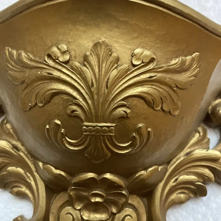 Brand: Homco Type: Wall Plant Holder Sconce Shape: Flower Color: Gold Model: 6050 Style: Hollywood Regency Theme: Flowers Material: Syroco Resin Features: Hanging MPN: 6050 Country/Region of Manufacture: United States
