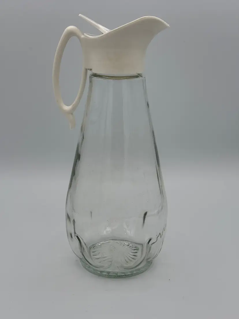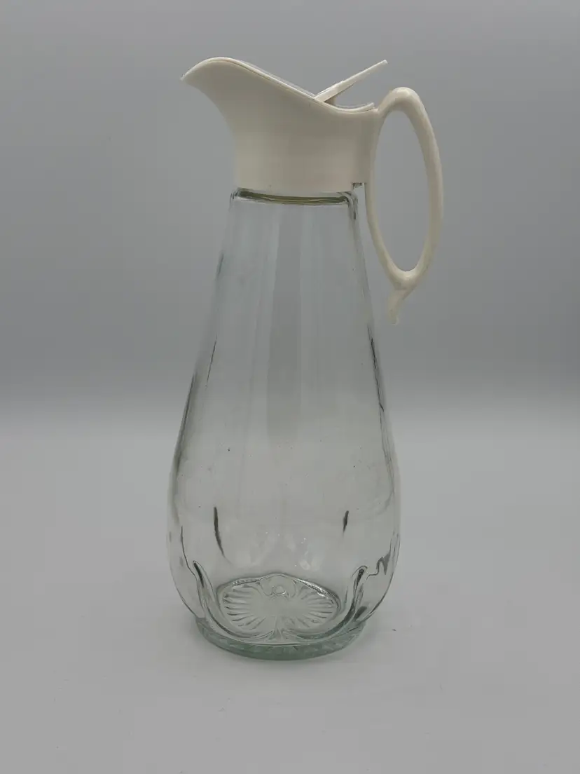Vintage 1970's Log Cabin Glass Maple Syrup Dispenser/Pitcher. 9" Tall No Chips/Cracks.