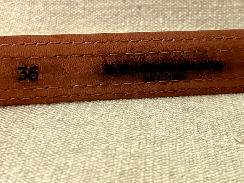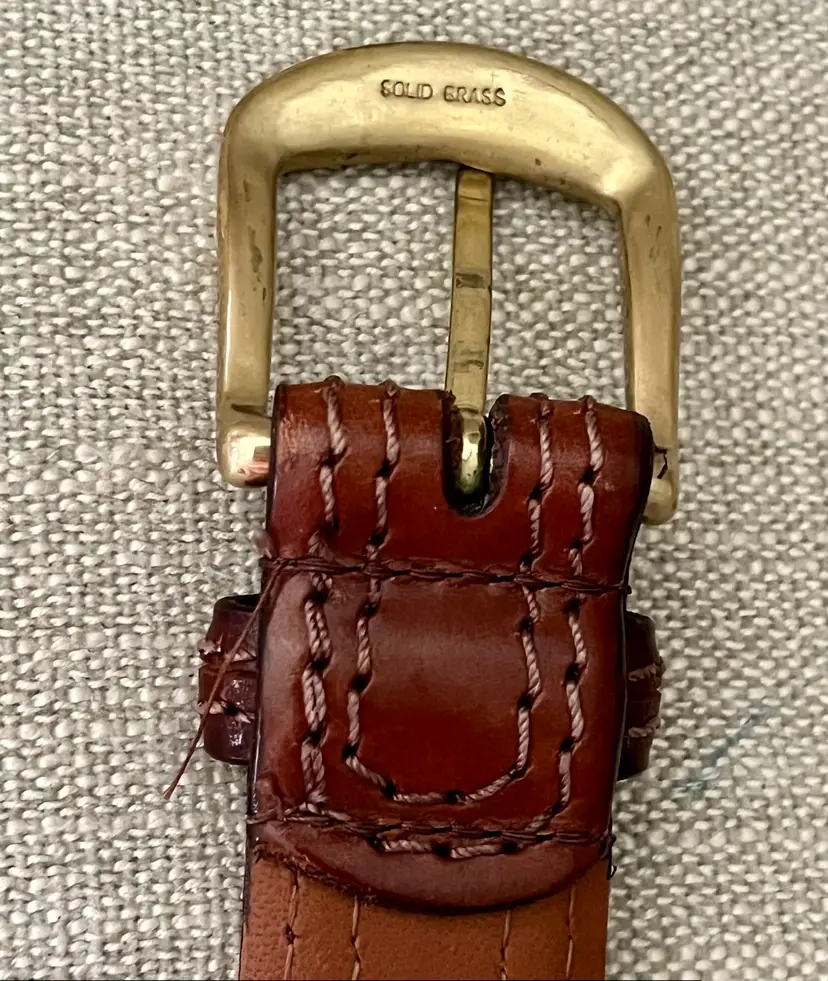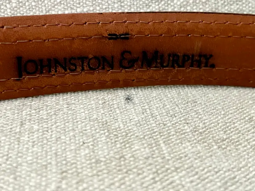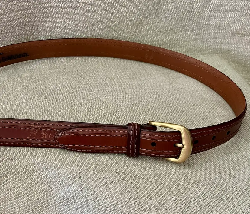 This product is a classic men's Italian leather belt in size 36, J271, featuring solid brown color with double stitching and a brass buckle. The belt is approximately 1" wide, with a dress belt style suitable for a formal, dressy, or even casual look. It is of high quality, with the brand being Johnston & Murphy and the hardware material being solid brass. Made in the United States, this belt is a timeless accessory that adds a touch of classic sophistication to any outfit.