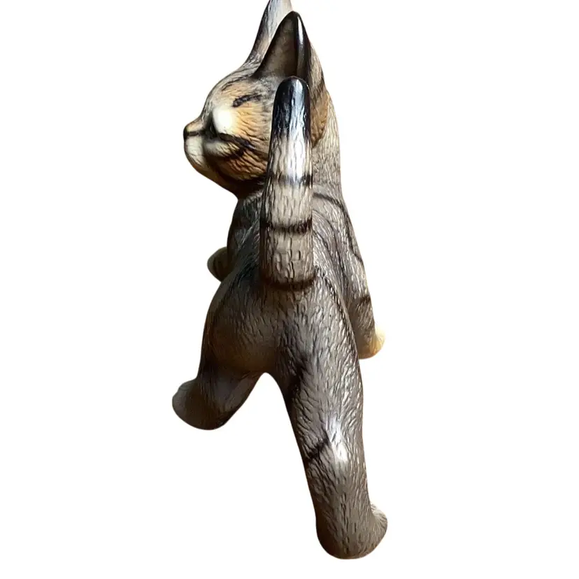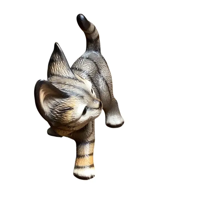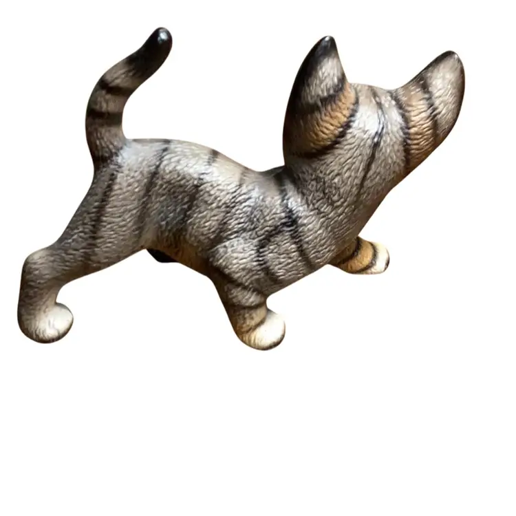 Tabby Cat With Green Eyes , Japan Ceramic Figurine 5” L X 2.5” W X 3.5” T