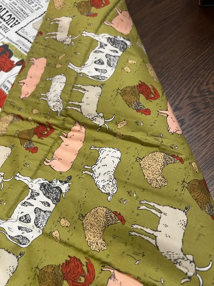 Farm house themed table runner cotton fabric Protects your table with hot dishes 34” x 18”