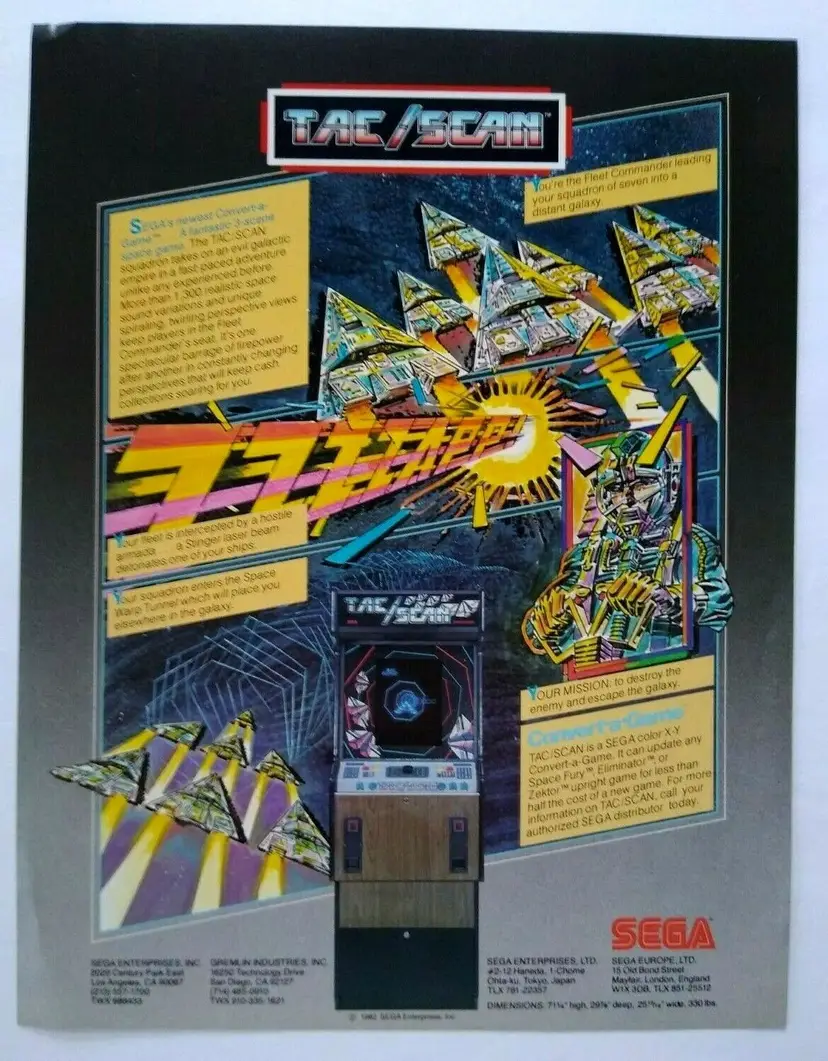 Modified Item: No Country/Region of Manufacture: United States Original/Reproduction: Original Year: 1982 Game Title: Tac/Scan Brand: Sega Theme: Retro Arcade: Flyer