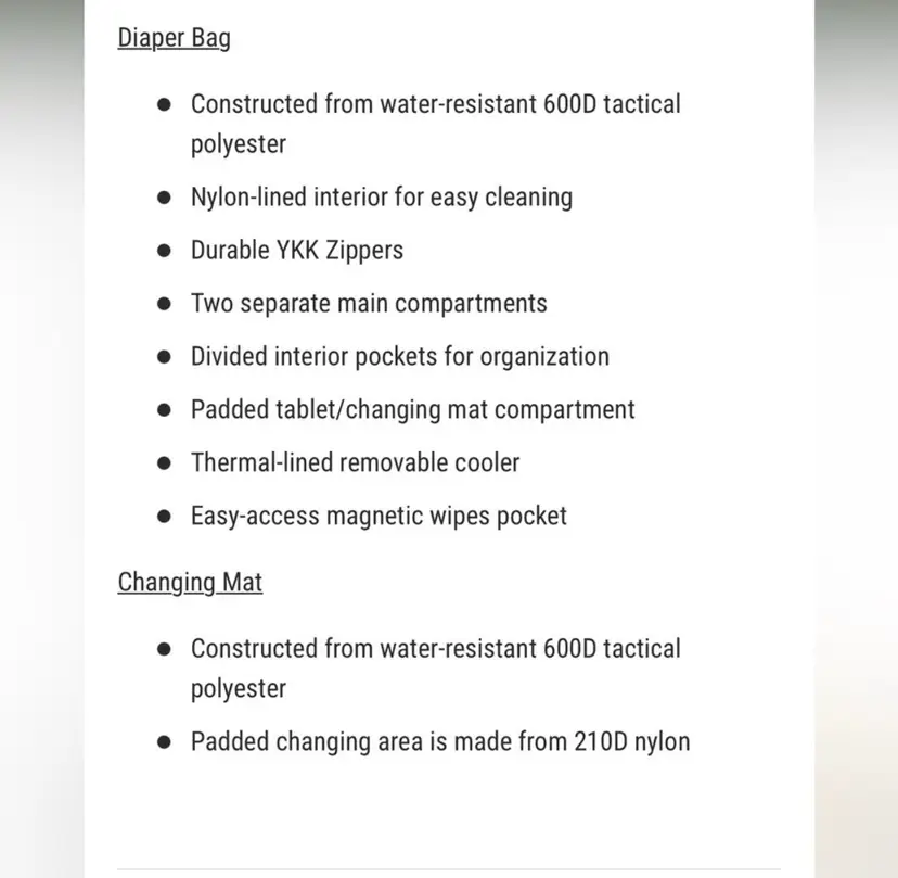 All info at link below, gently used, in great condition. Can be used as a diaper bag, EDC or even hiking backpack. Comes with cooler bag and changing pad.