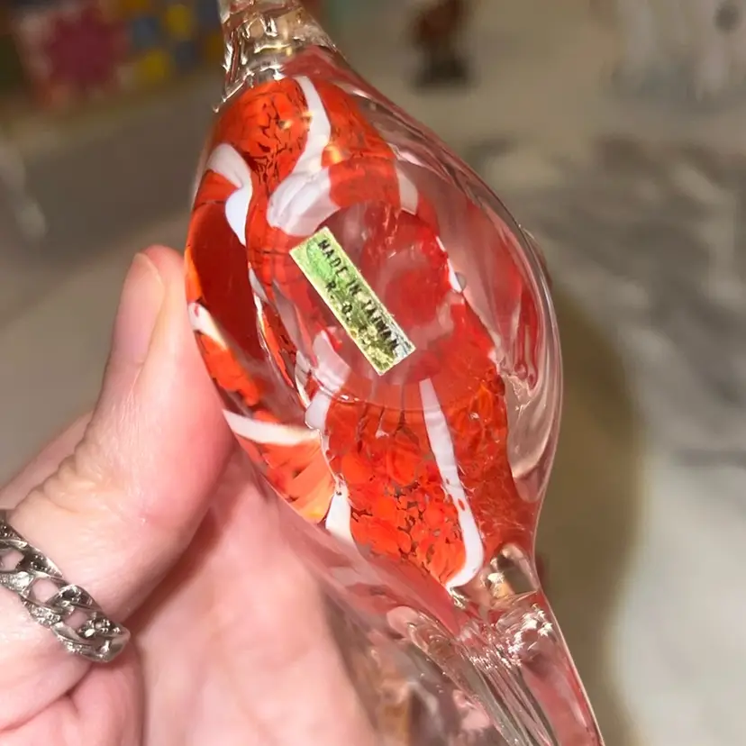 Taiwan Art Glass Fish Paperweight Orange & White 4.5”