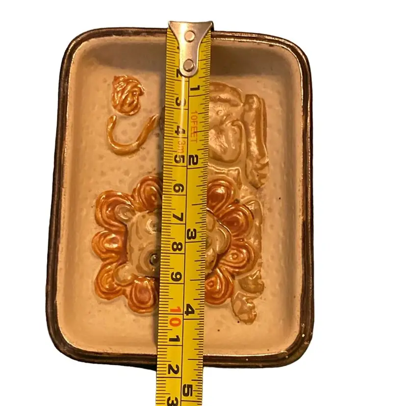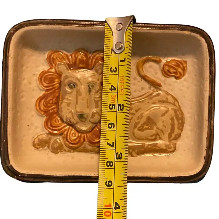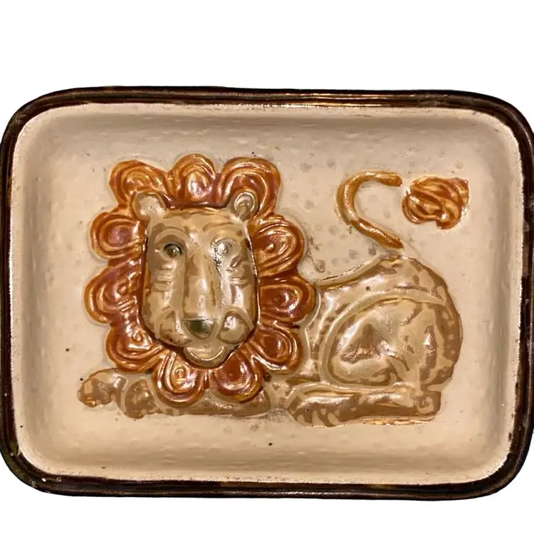 Vintage Takahashi pottery lion trinket/soap dish Please review pictures very carefully. This piece does have some paint fading around the right eye and around the edges. these imperfections do not detract from the cuteness of this piece.