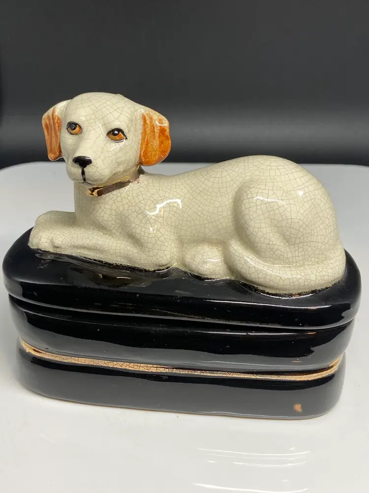 Discover the charm of this Takahashi San Francisco Trinket Box, a delightful medium-sized keepsake adorned with a charming dog motif on its glossy, crackle-finished lid. Measuring 4 inches in height and 5 inches in width, this multicolored treasure weighs in at a comfortable 11 ounces, making it a substantial yet manageable addition to any collection. Crafted with attention to detail, this trinket box serves as a perfect storage for your small valuables or as a stand-alone decorative piece. The exquisite design and vibrant colors make it an ideal gift for loved ones or a splendid treat for oneself to cherish and admire.