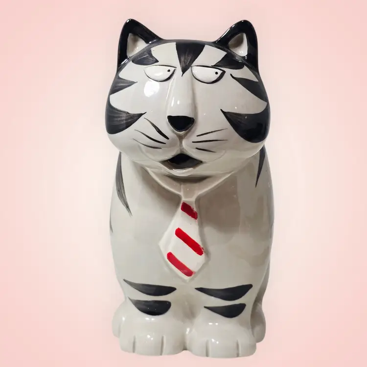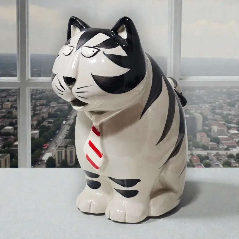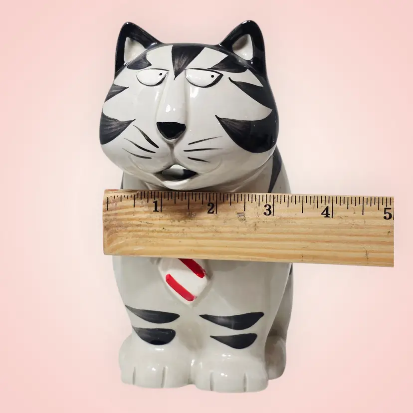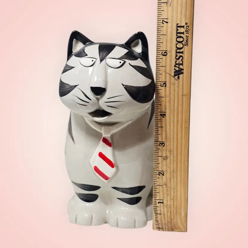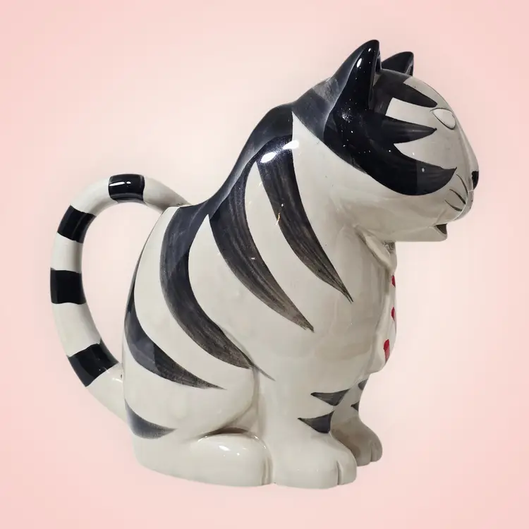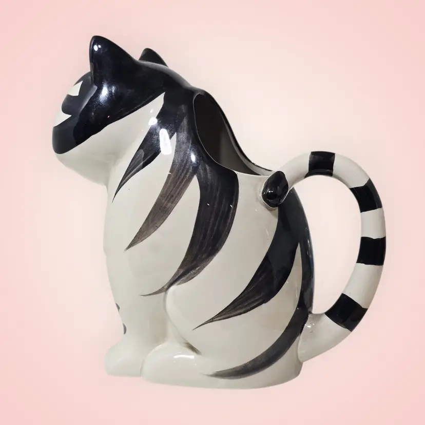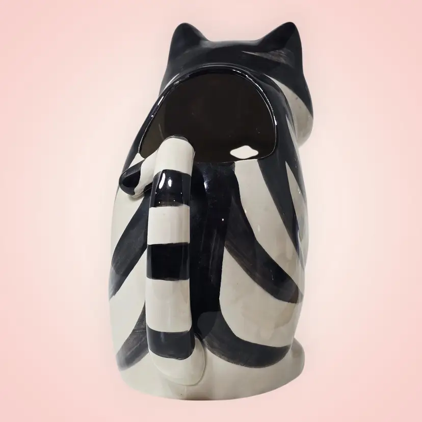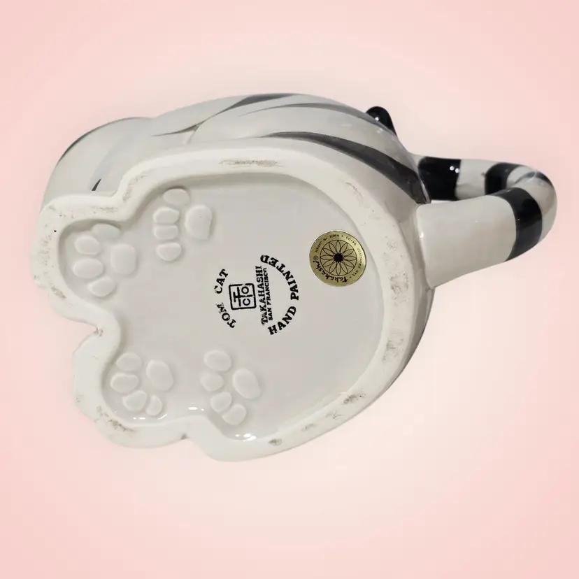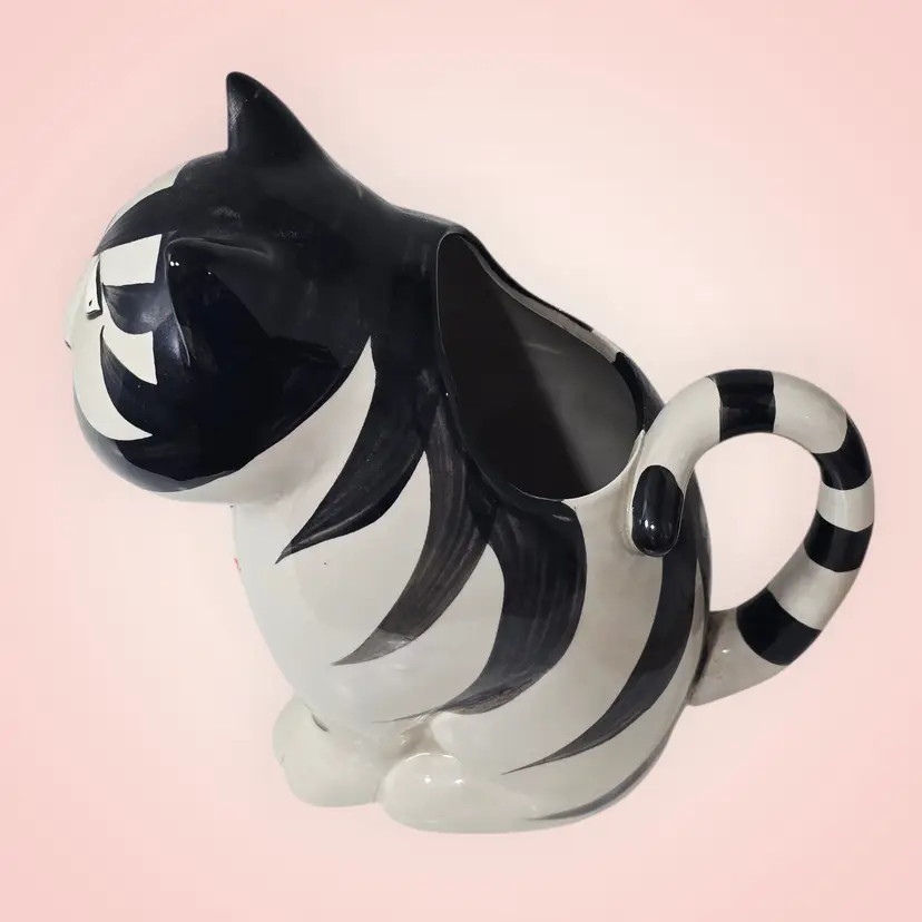 Takahashi Tom Striped Black White Cat Pitcher Creamer Planter Hand Painted 1980s